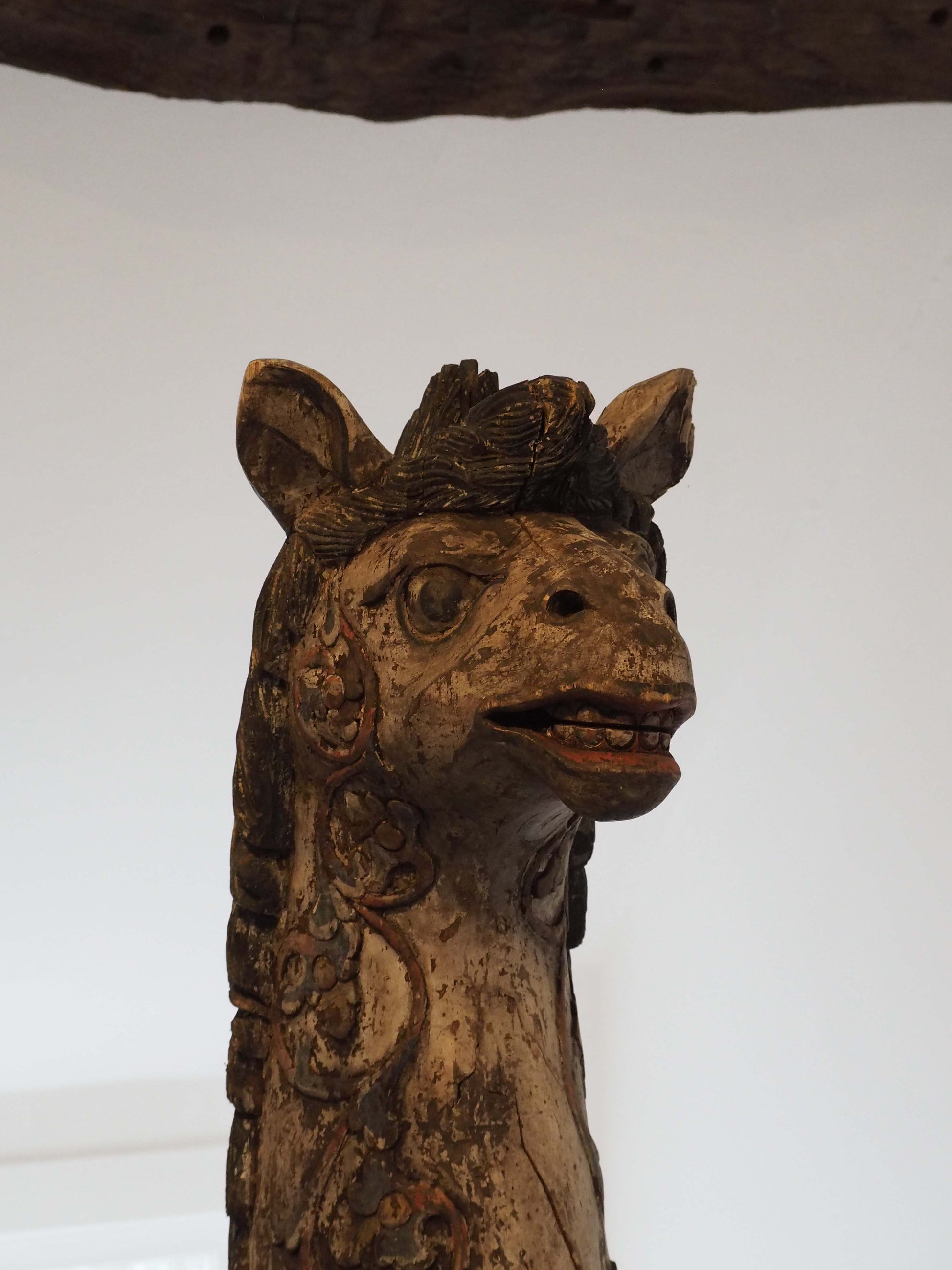 Antique Early 20th-Century Large Rare Hand-Carved Asian Decorative Wooden Horse Sculpture