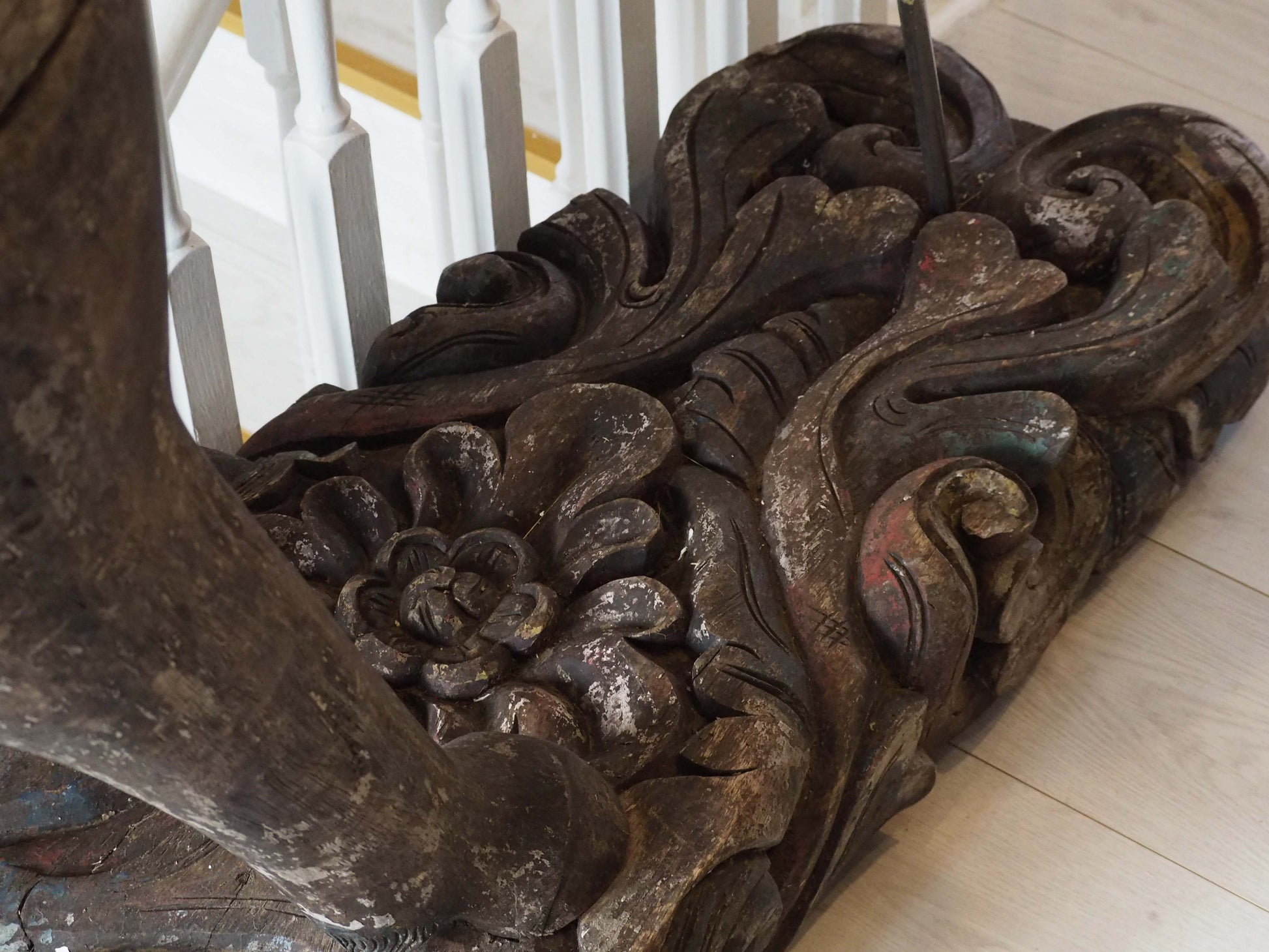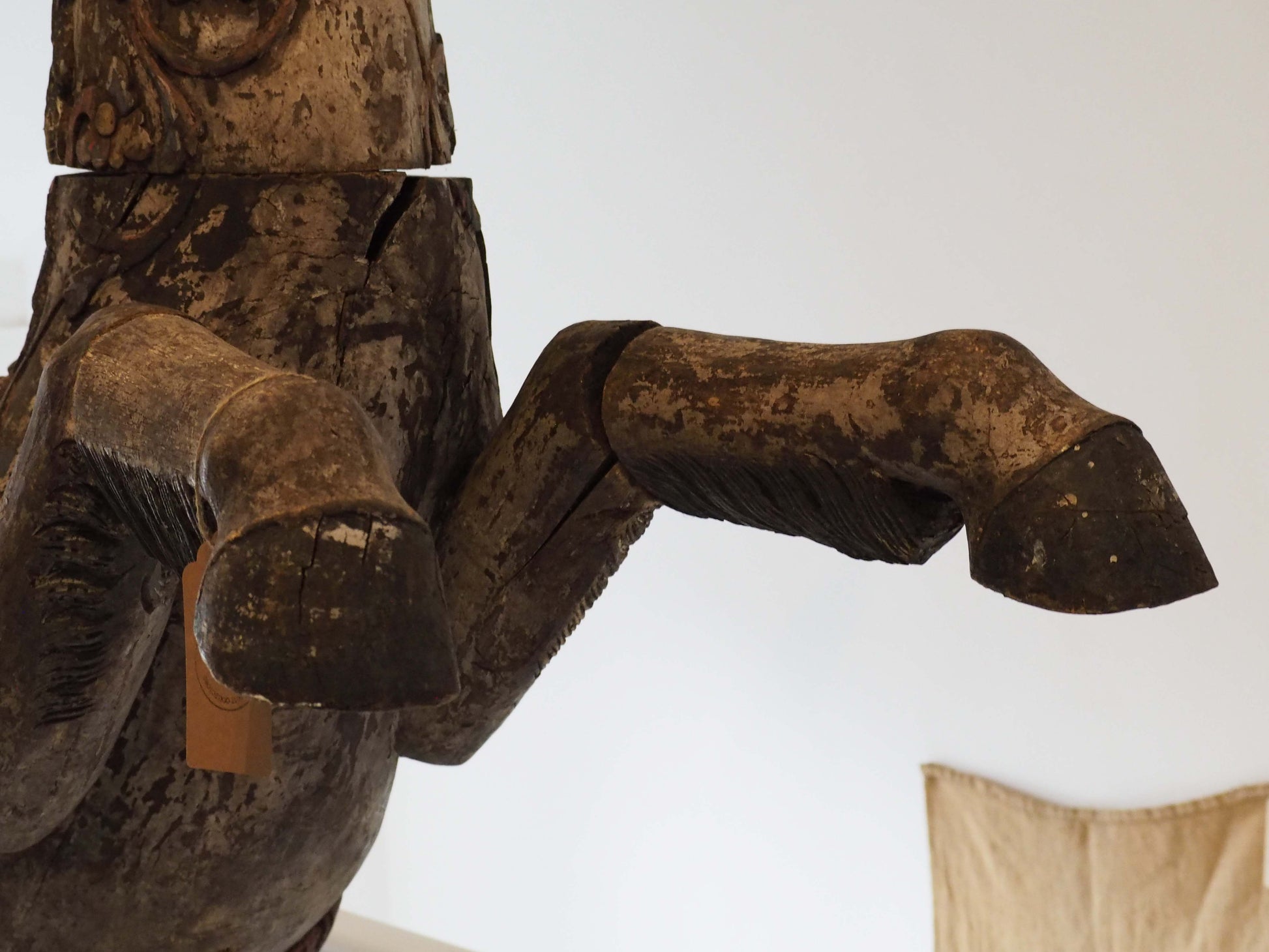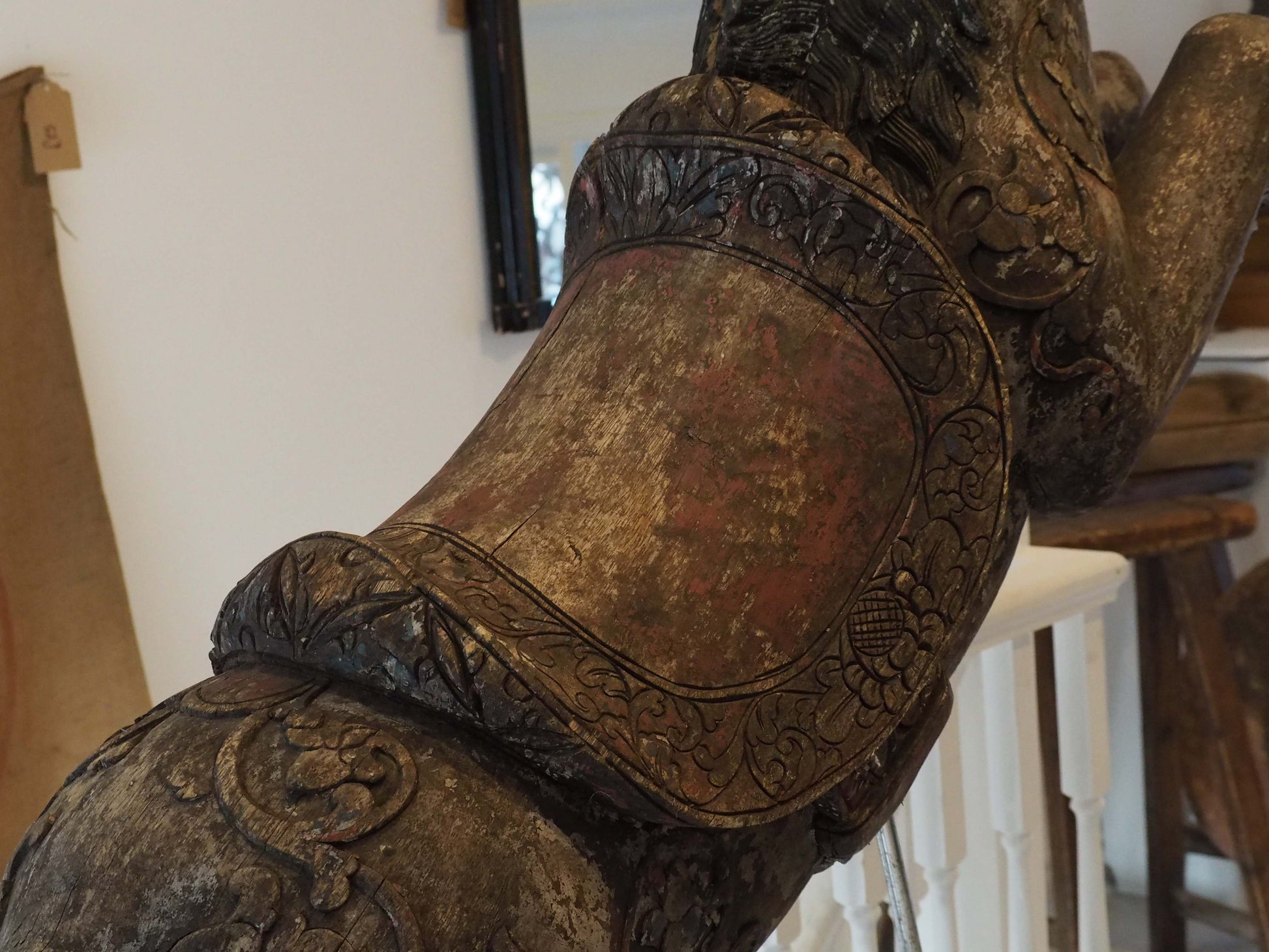 A fabulous large hand-carved wooden decorative horse sculpture standing on its hind legs. From the early 20th-century, it was believed to have been used for precessional purposes in South-East Asia (Thailand, Cambodia). Standing at 2m tall, it is an incredible decorative piece that's extremely rare, and it will certainly catch lots of attention.