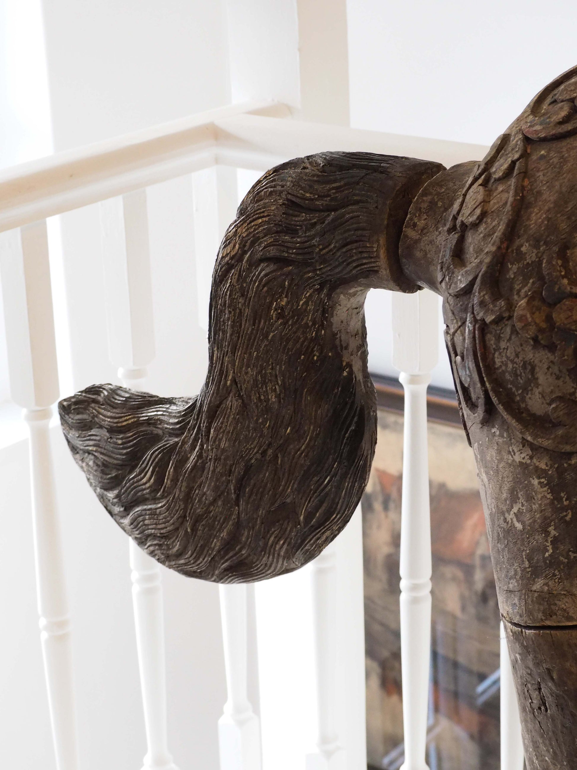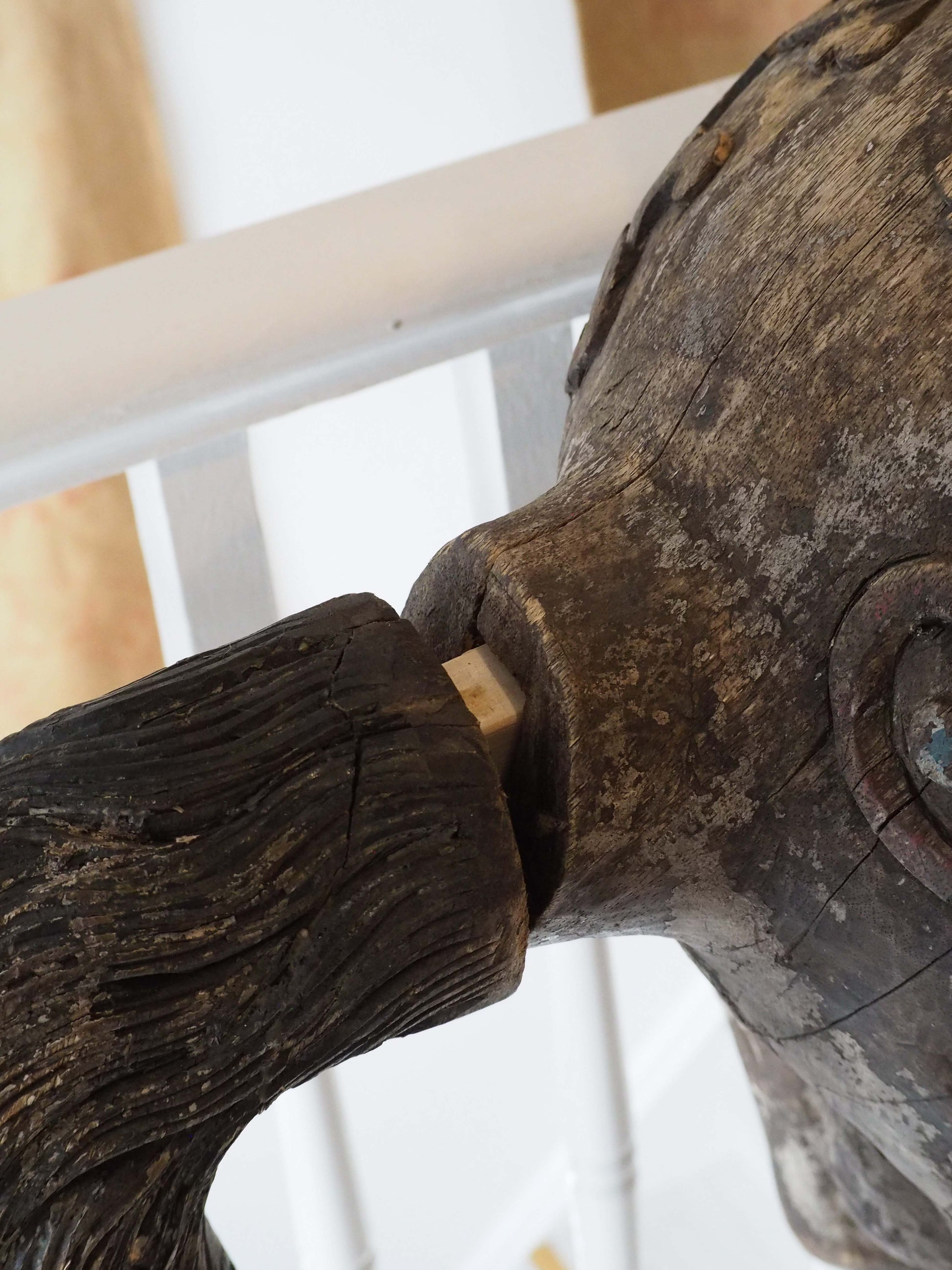 Named Derek (by us), he fully comes apart and is easy to reassemble. There are some minor repairs visible to the tail and front left hoof (please refer to photographers) which could be cleaned up.