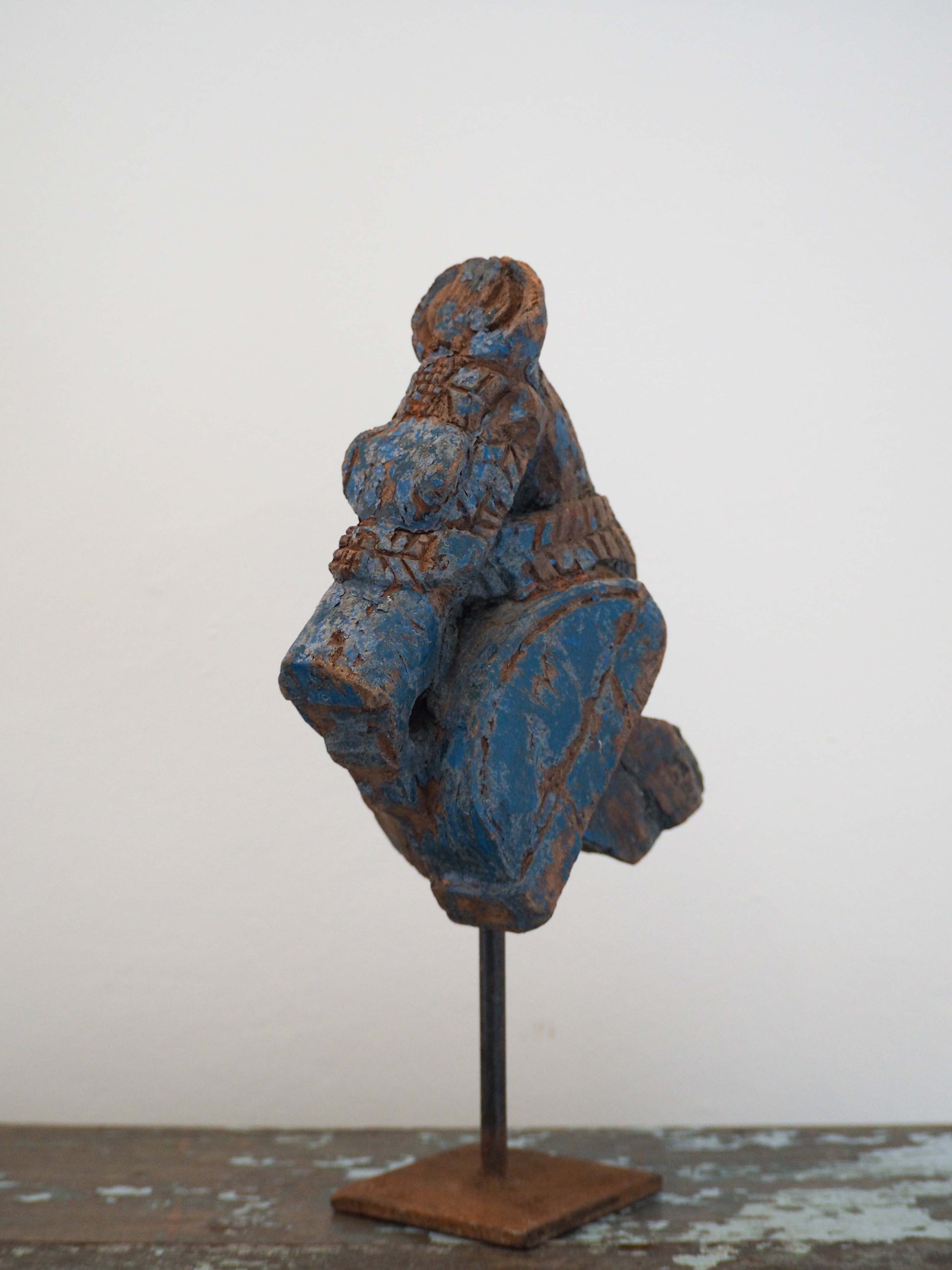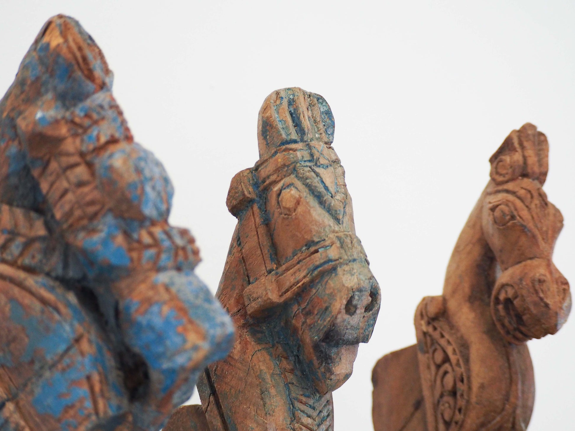 Antique Indian Hand-Carved Wooden Horses Heads on Stand / Blue Paint (Sold Individually)
