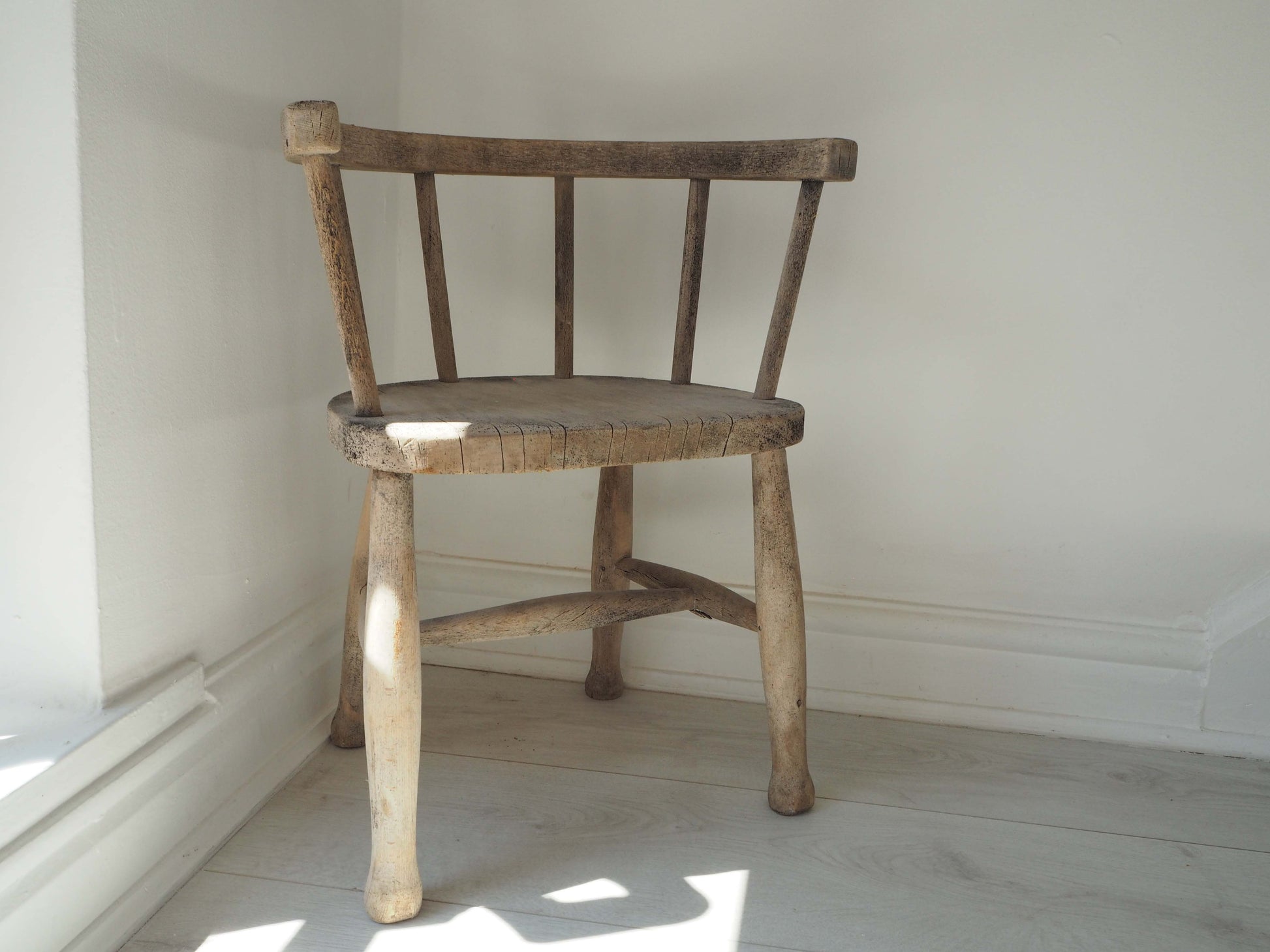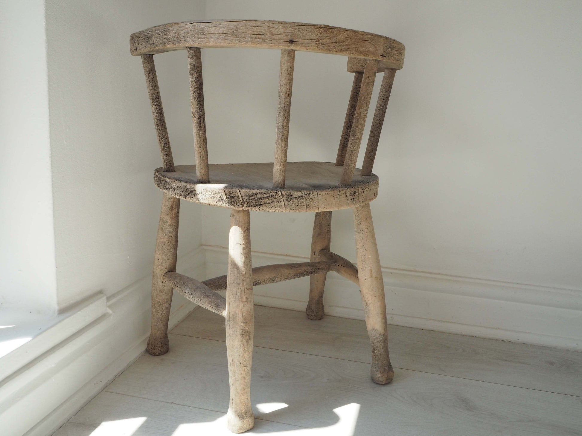 This item is in great vintage condition with little sign of wear and no leg or spindle replacements. The chair has been stripped back to its bare wood, and there is no sign of active woodworm but it has been treated just incase.