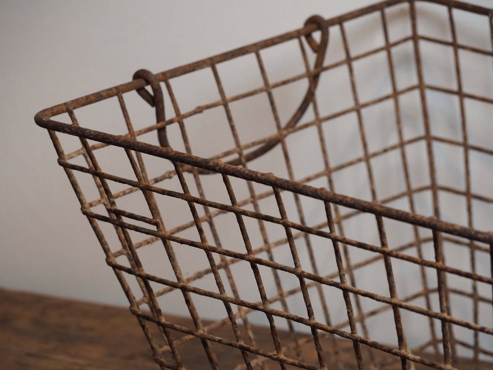 Antique Vintage French Wire Oyster Basket with Handles / Storage Container