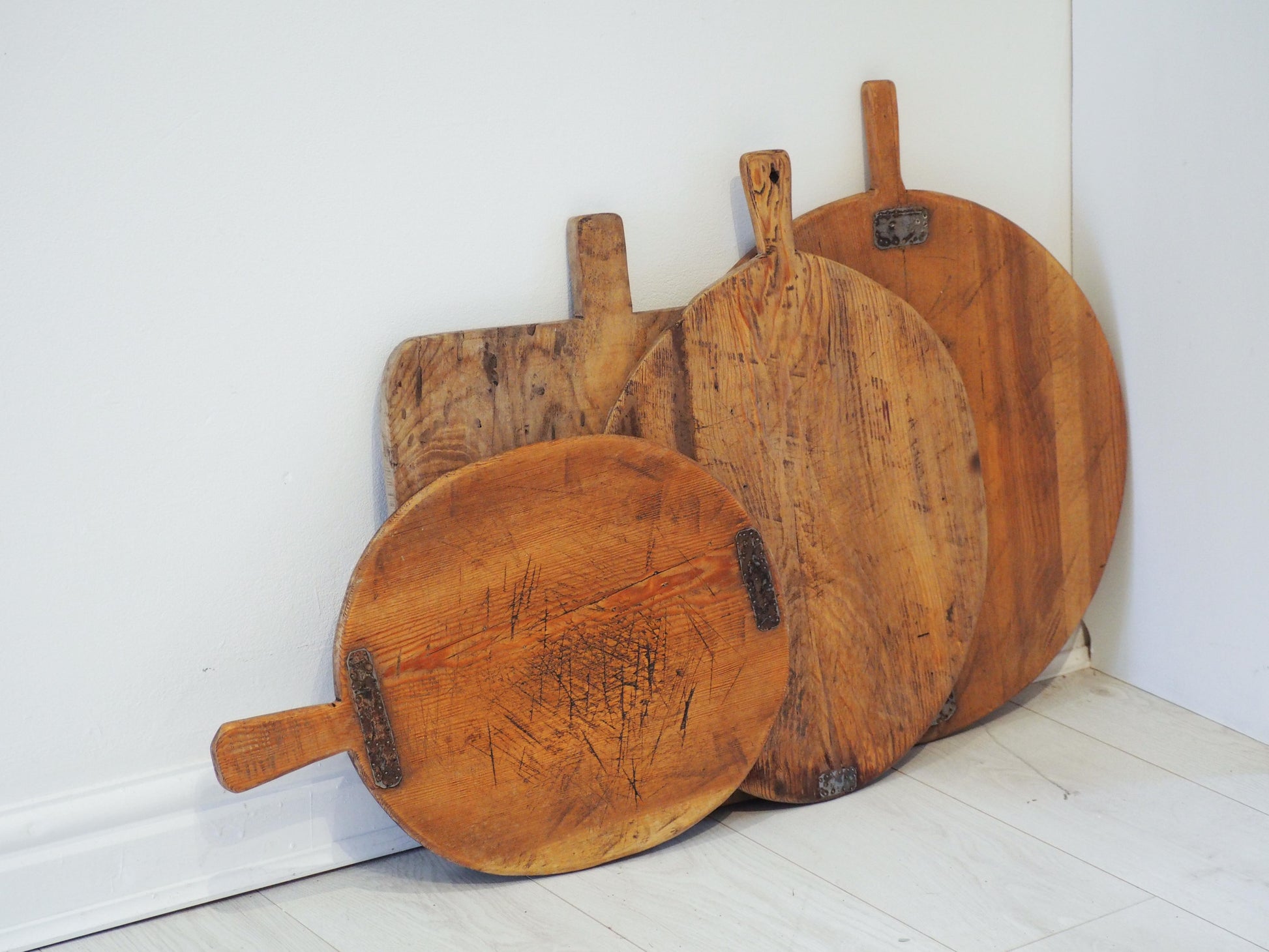 A beautiful rustic wooden bread board originally from Turkey. Often made from a single piece of wood, they were used traditionally in bread making and are prized for their unique character and imperfections (like stains, splits, or repairs), and farmhouse charm. Now, they serve as decorative kitchen pieces or charcuterie platters, showcasing rich history and craftsmanship.