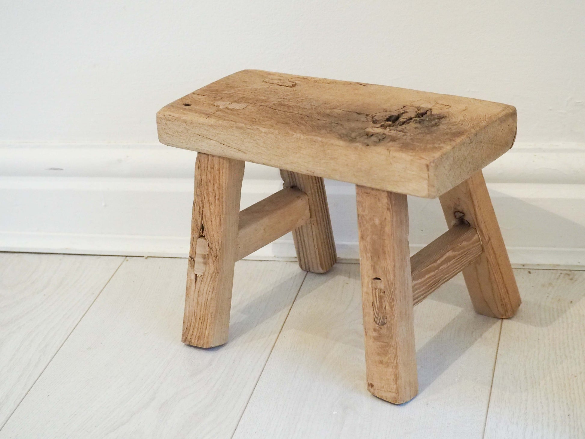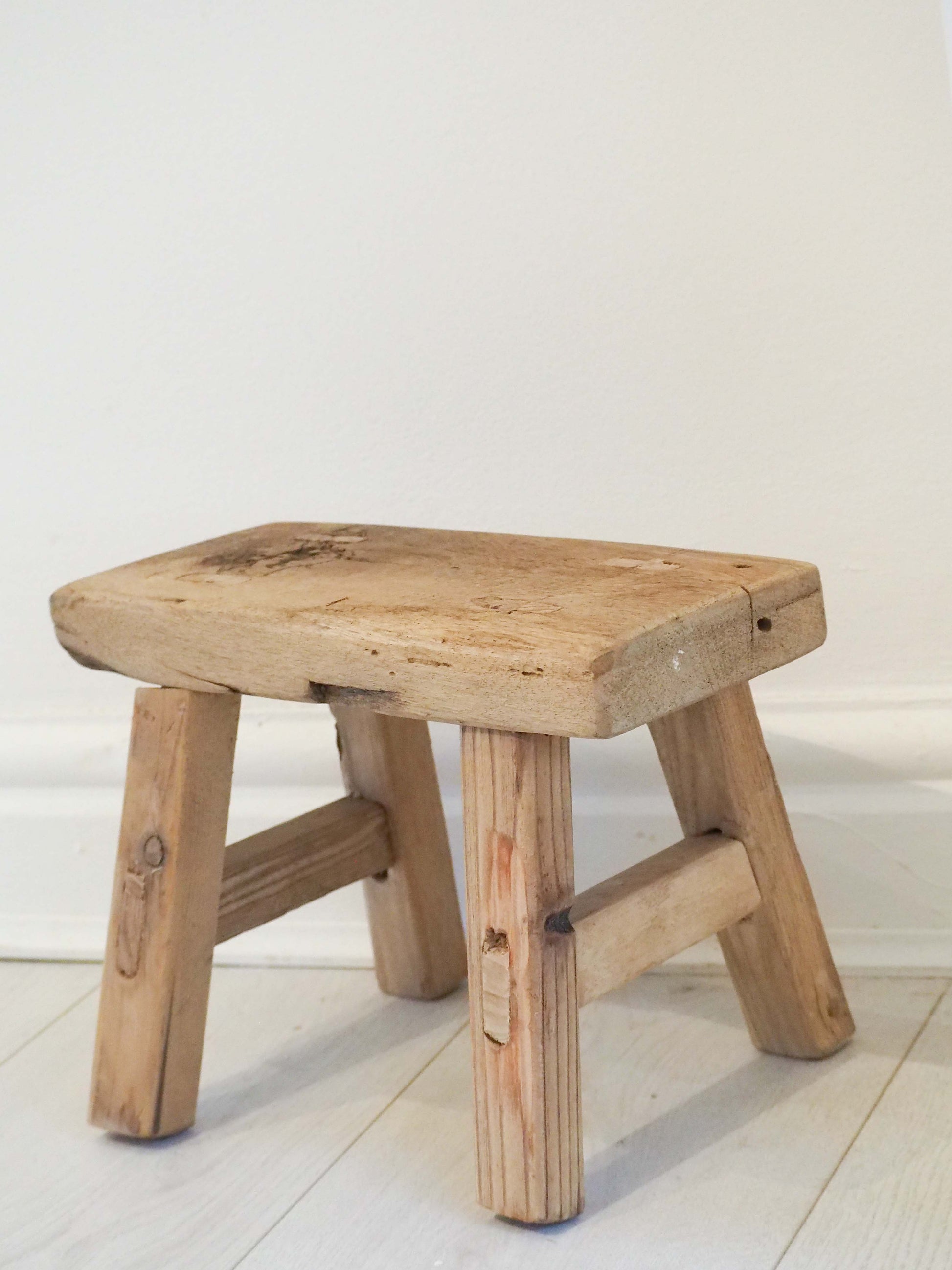 A beautiful original small antique elm rustic stool. These elm stools are solid, and have lovely original patina and character with each one being totally unique. Please note we have multiple stools available.