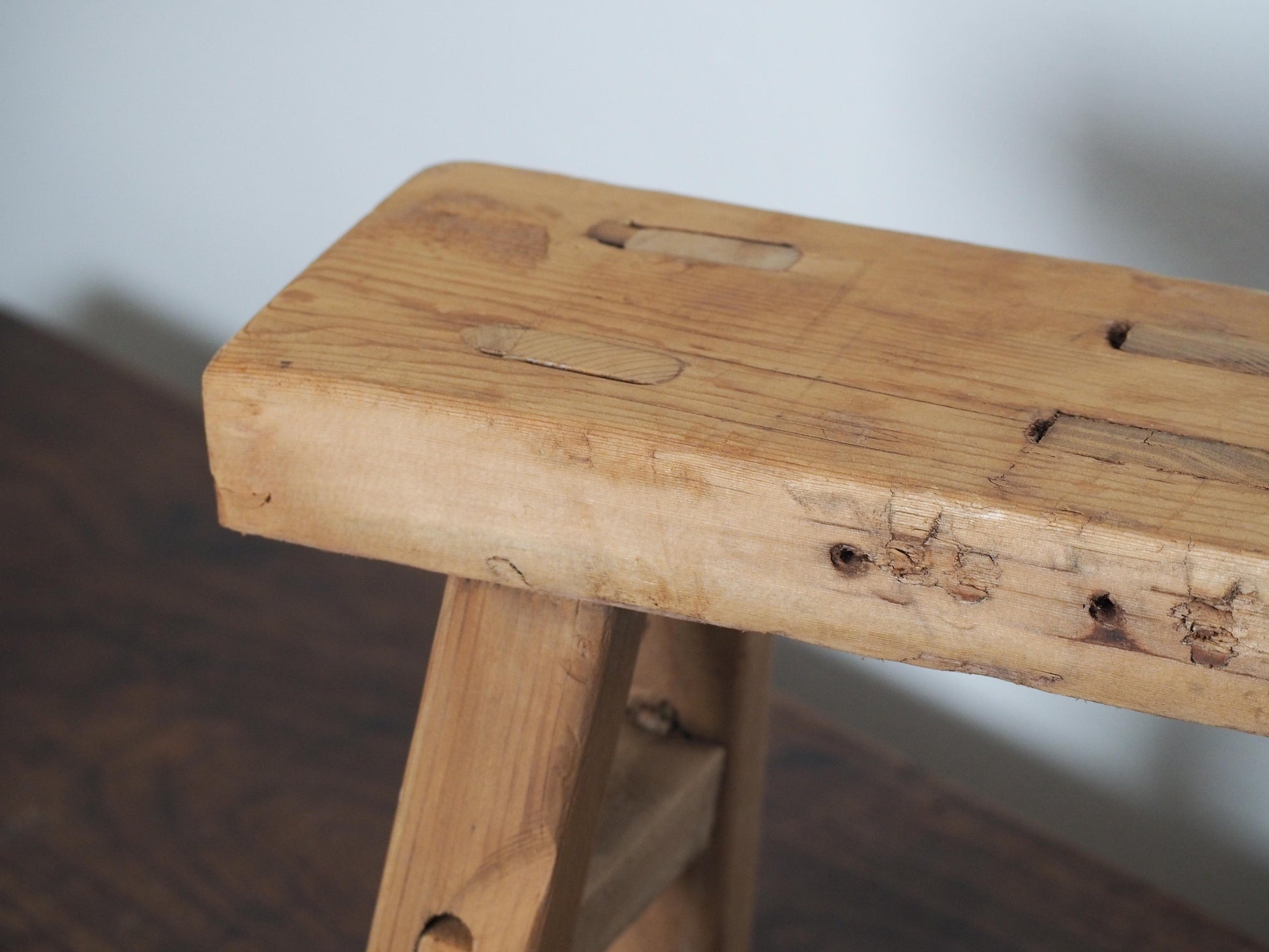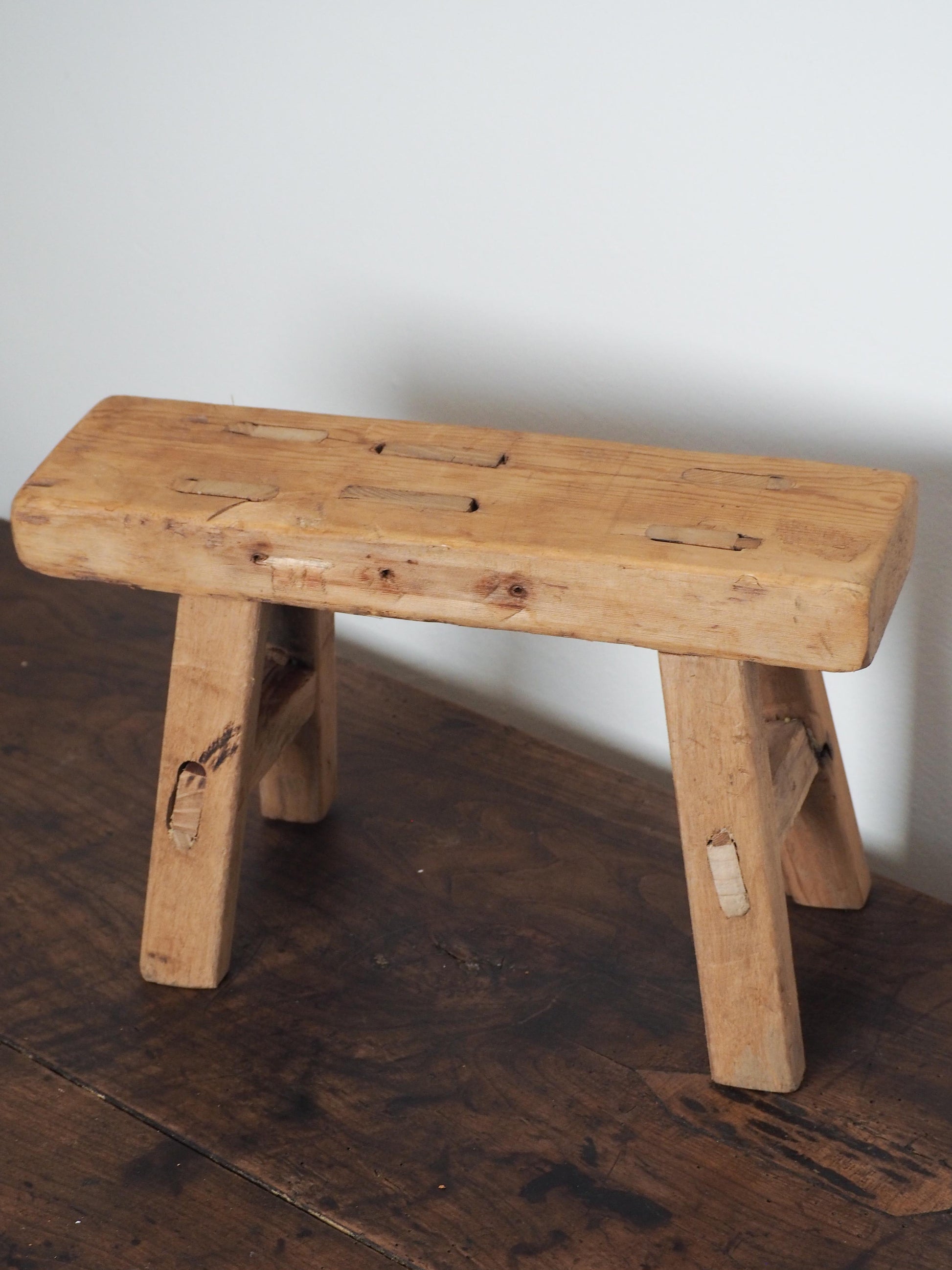 A lovely original small antique elm rustic stool. These elm stools are solid, and have lovely original patina and character with each one being totally unique.