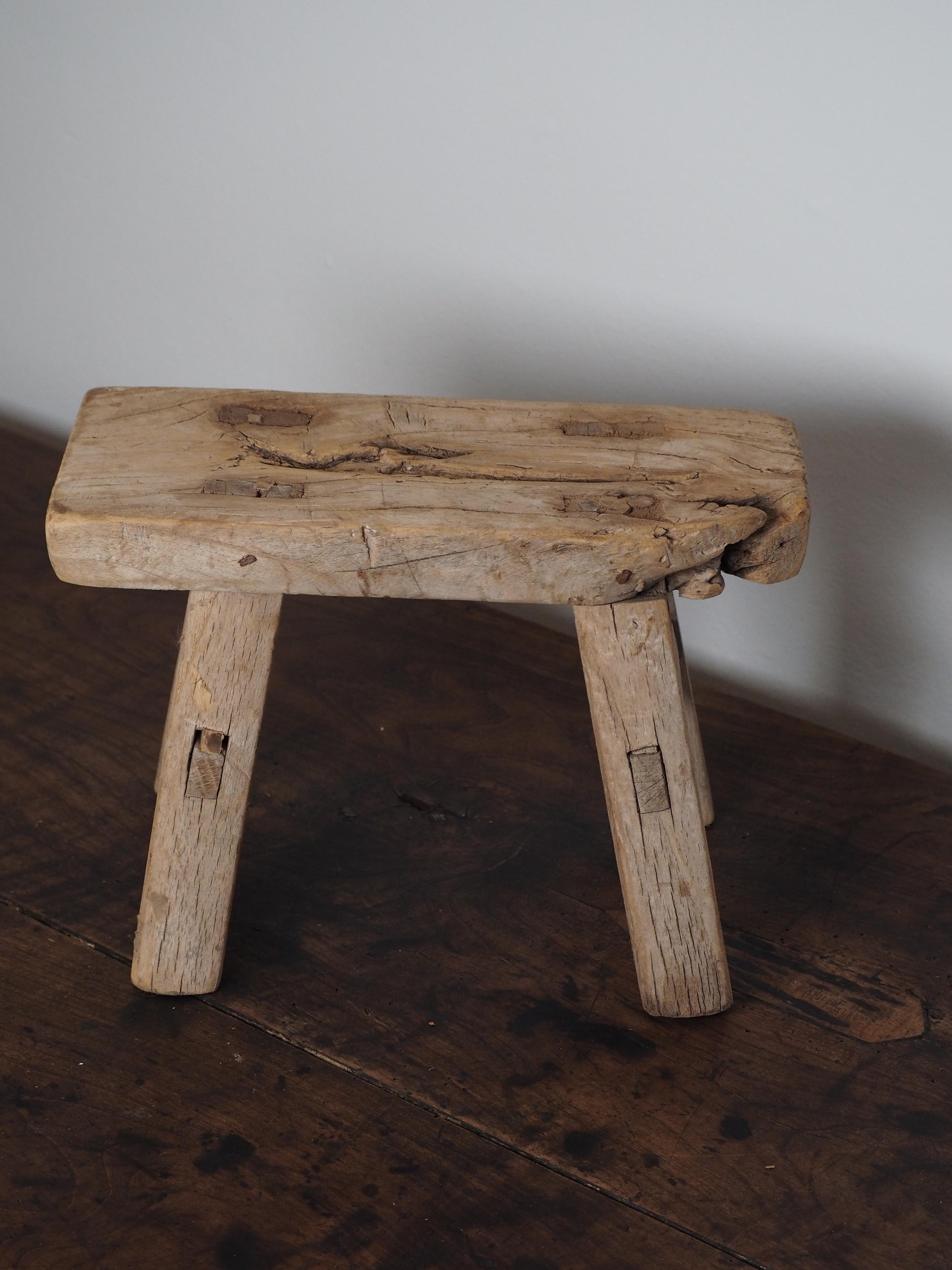 A lovely original small antique elm rustic stool. These elm stools are solid, and have lovely original patina and character with each one being totally unique.