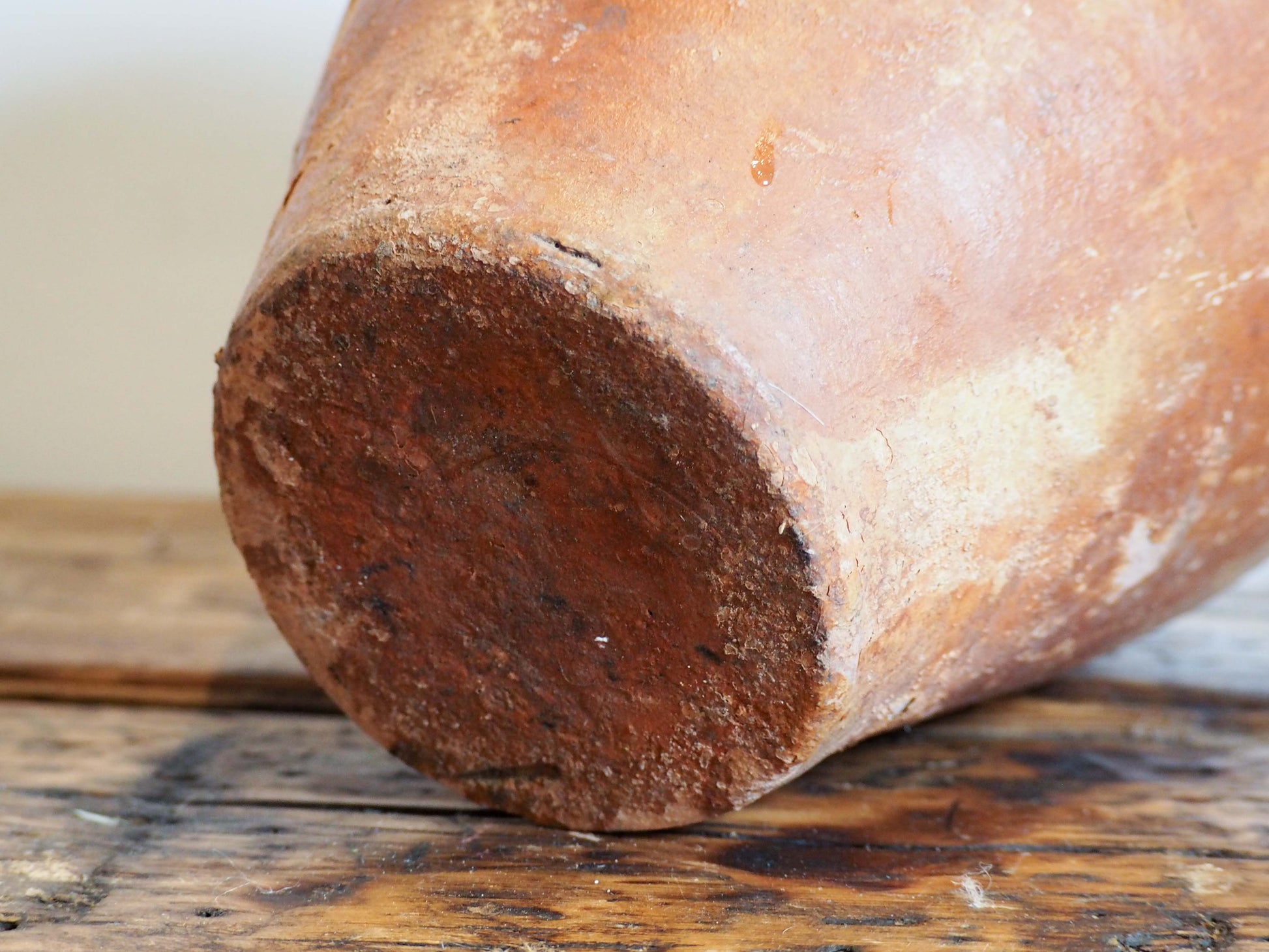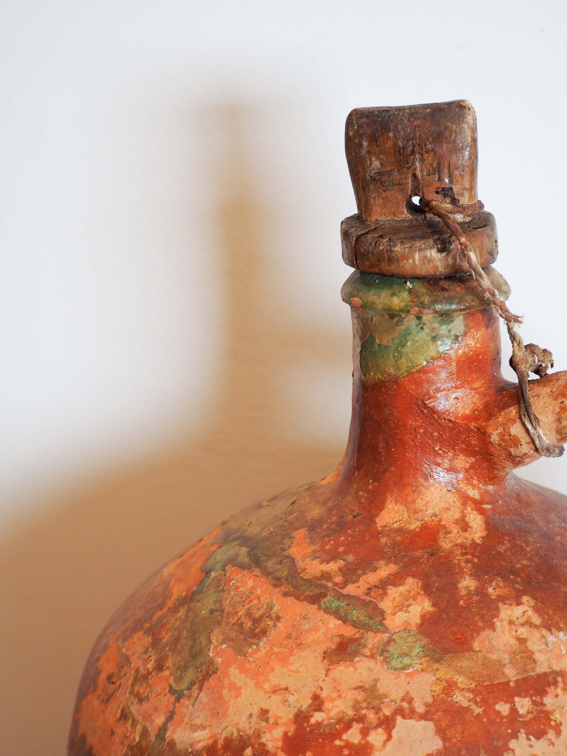 This vintage Turkish handcrafted terracotta urn originate would have been used for preserving and transporting various local delicacies, such as olive oil, grains, fruits and wine throughout Europe. Now, it makes a fantastic decorative item. This particular pot includes its original wooden stopper.