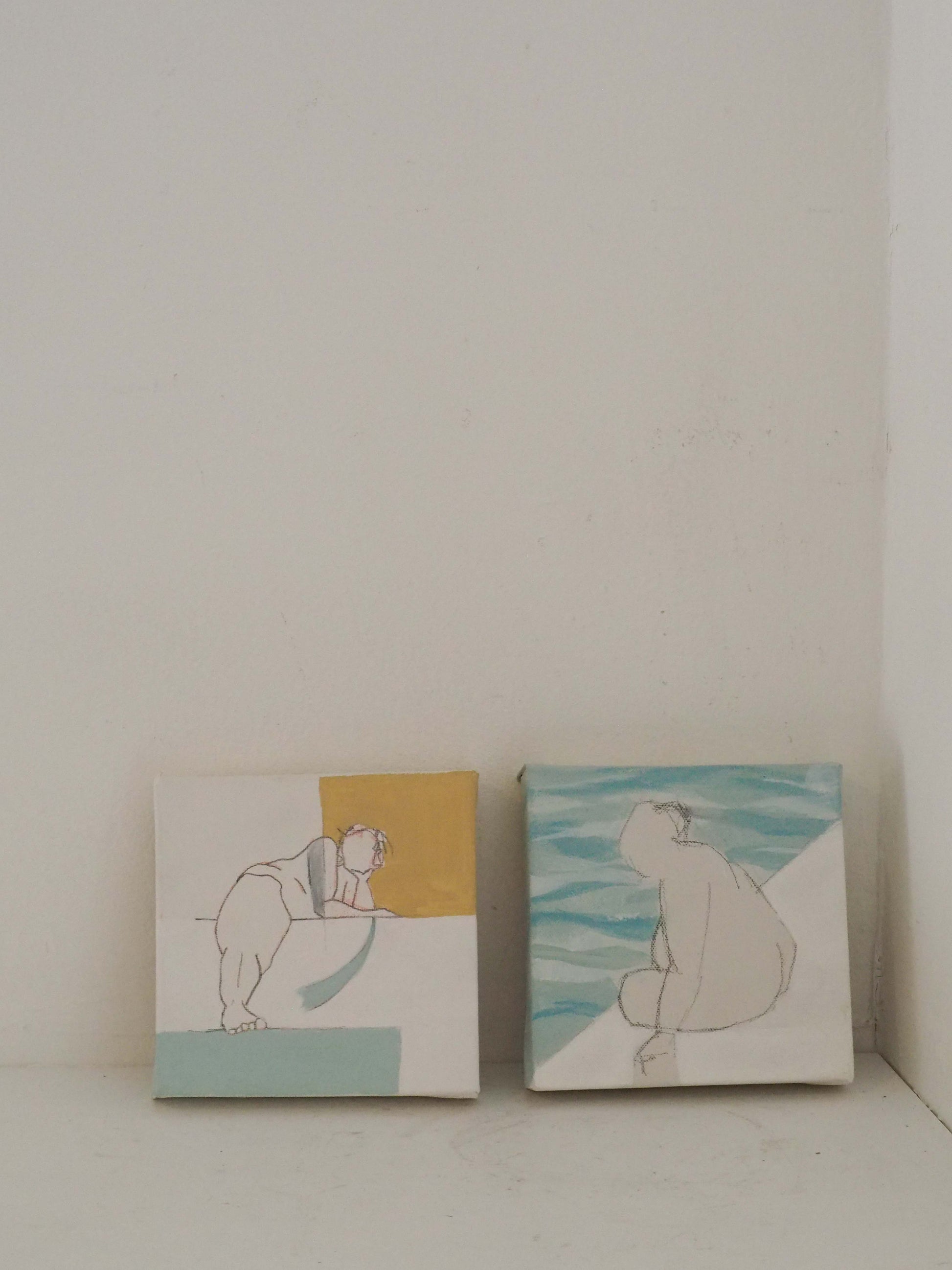 Pair of Original Paintings on Canvas by Wirral Artist Derek King / Nude Figure Art