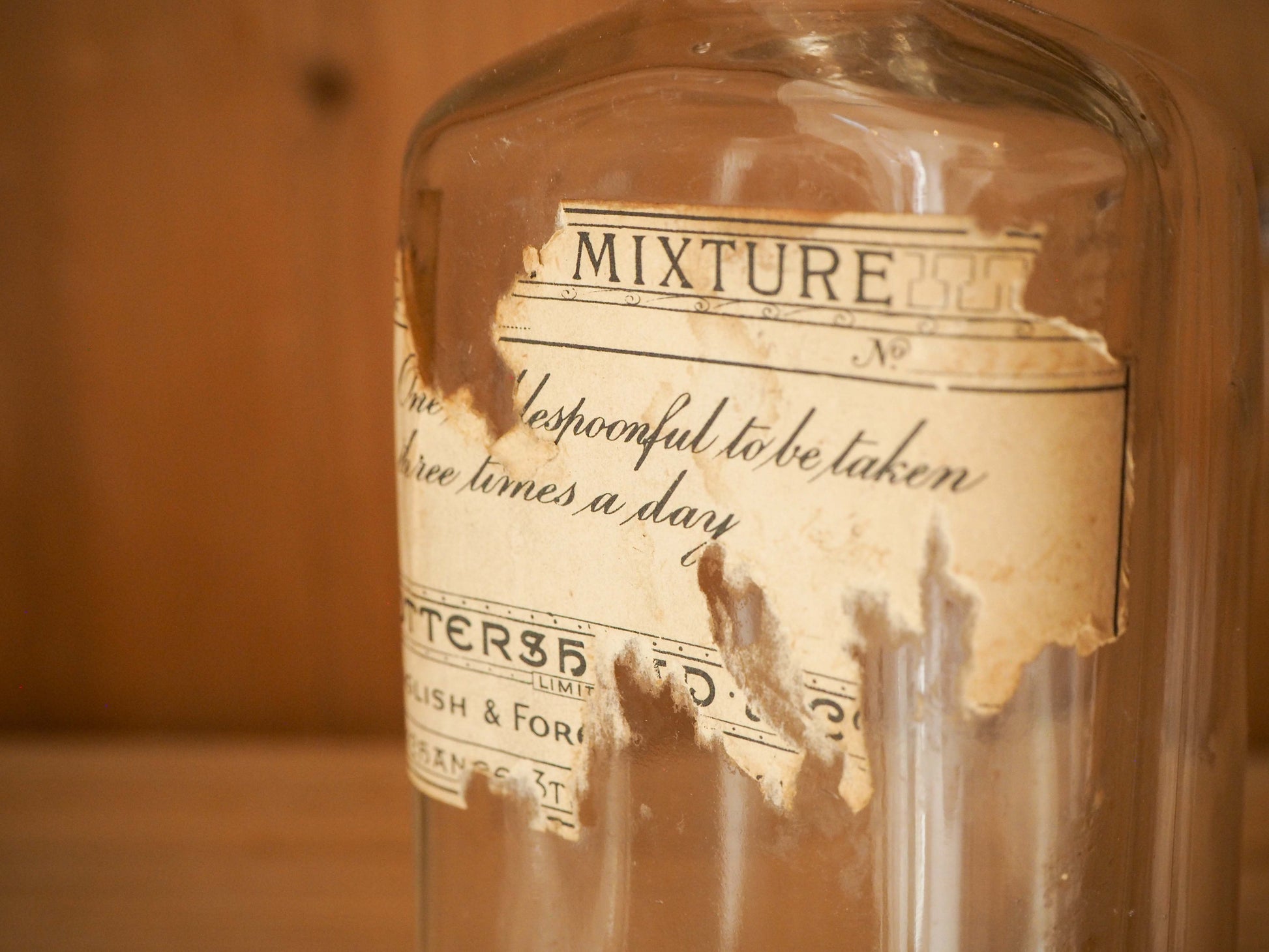 Trio of Vintage / Antique English Apothecary Chemist Bottles With Original Labels (Sold Individually)