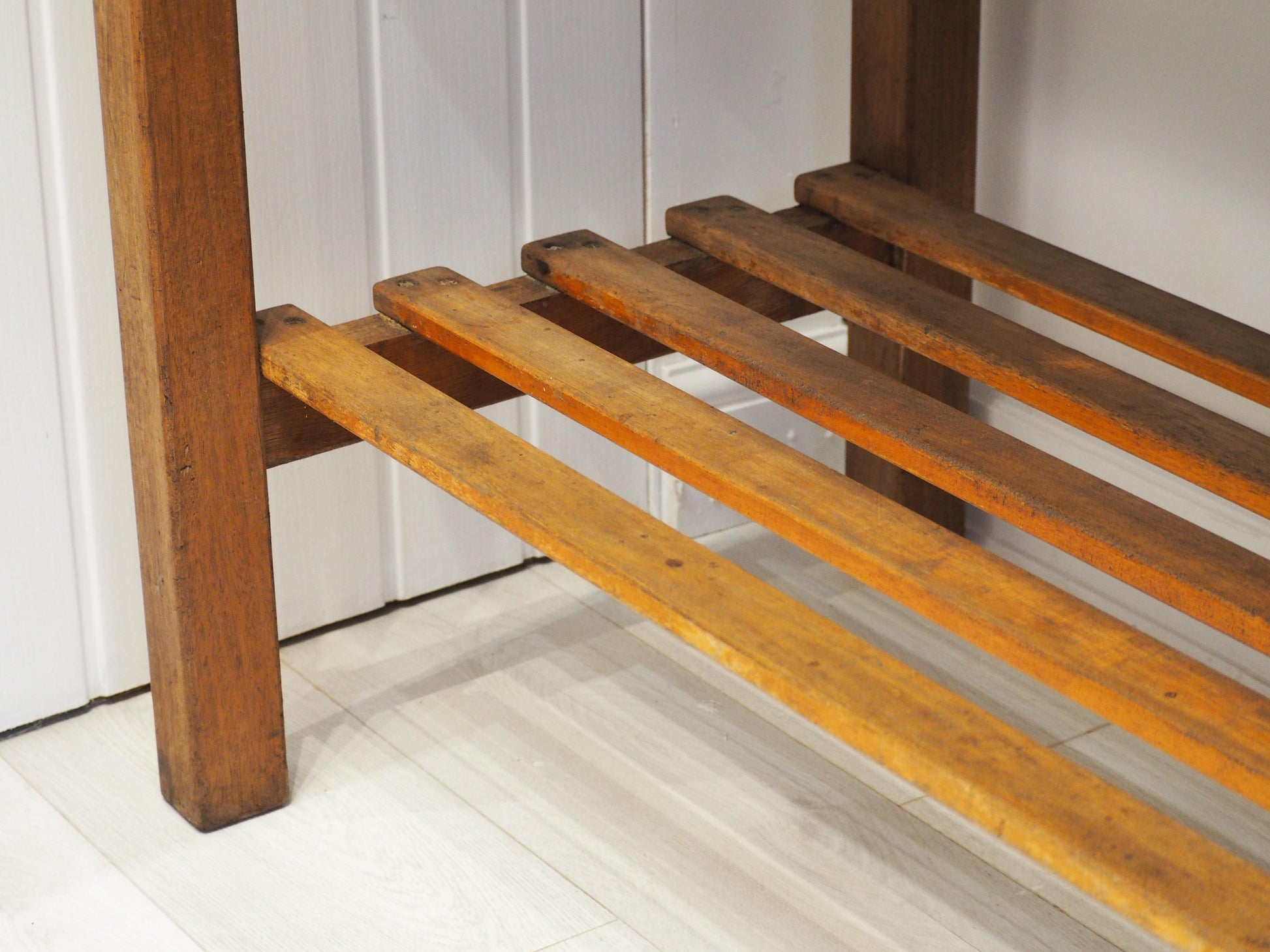 A charming beech and pine wood mix console table, originally a printers table. Antique printers tables were primarily used in 19th and early 20th-century print shops as specialised workstations for typesetting and arranging metal letters (type) before printing. These, often called composing tables or imposing stones, featured heavy, flat surfaces—sometimes metal-topped—to lay out type and, in some cases, incorporated storage drawers for sorting letters. Now, its the perfect size for a console or hallway table.