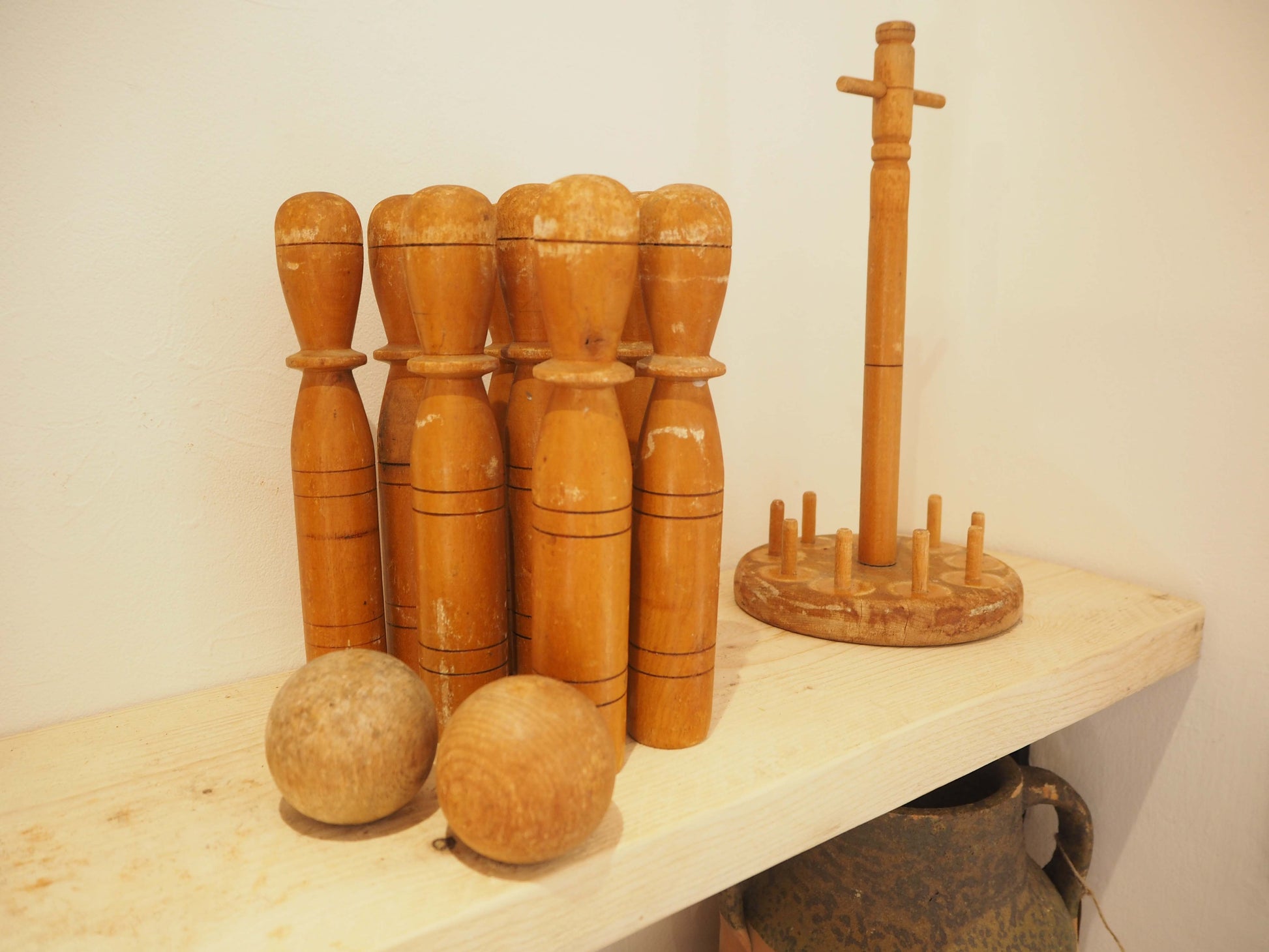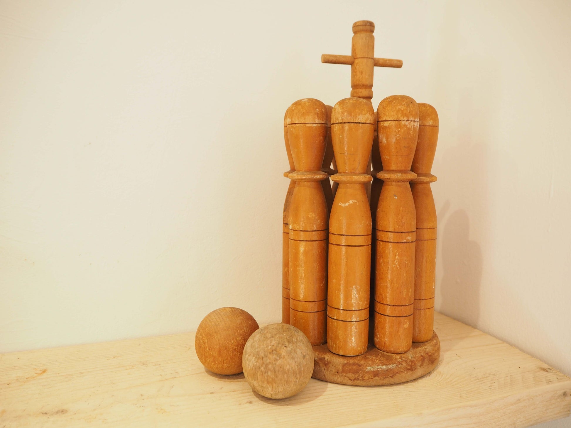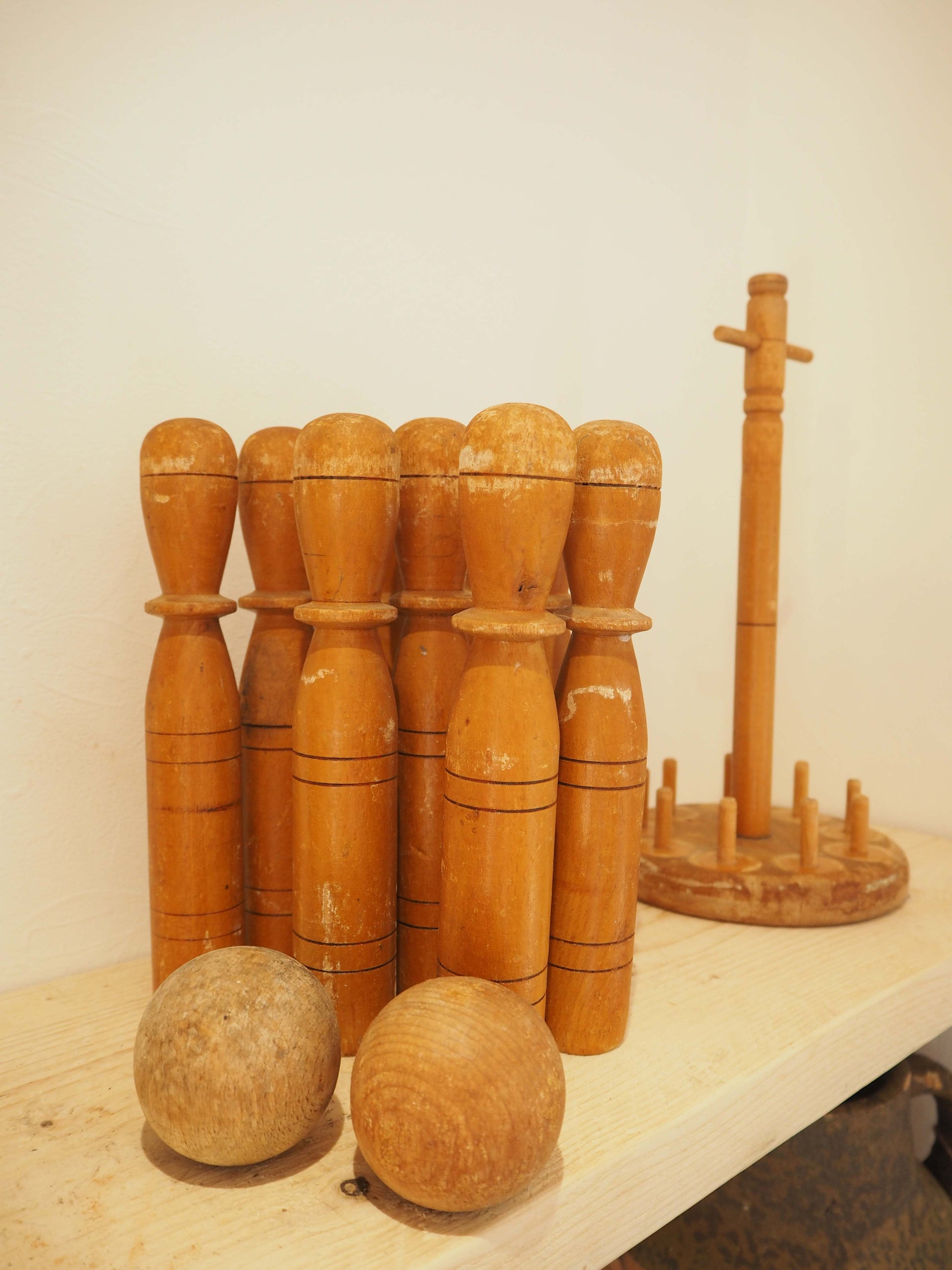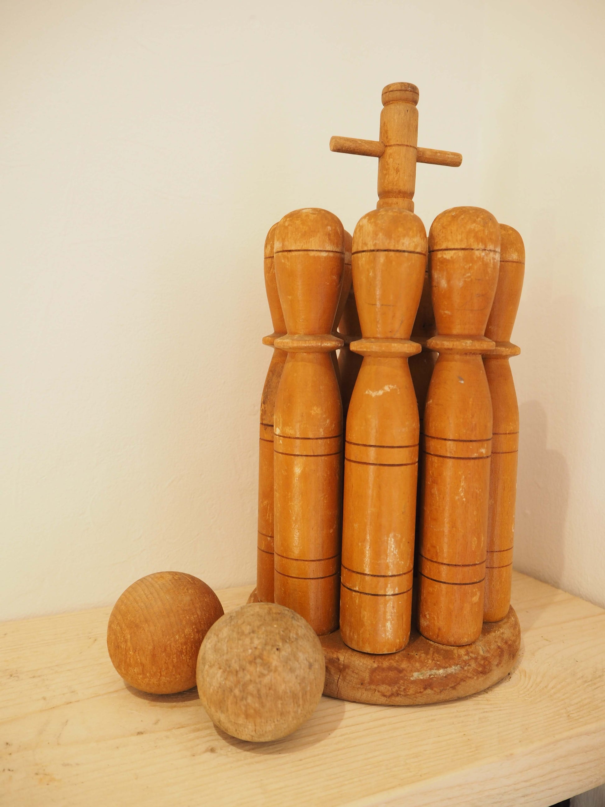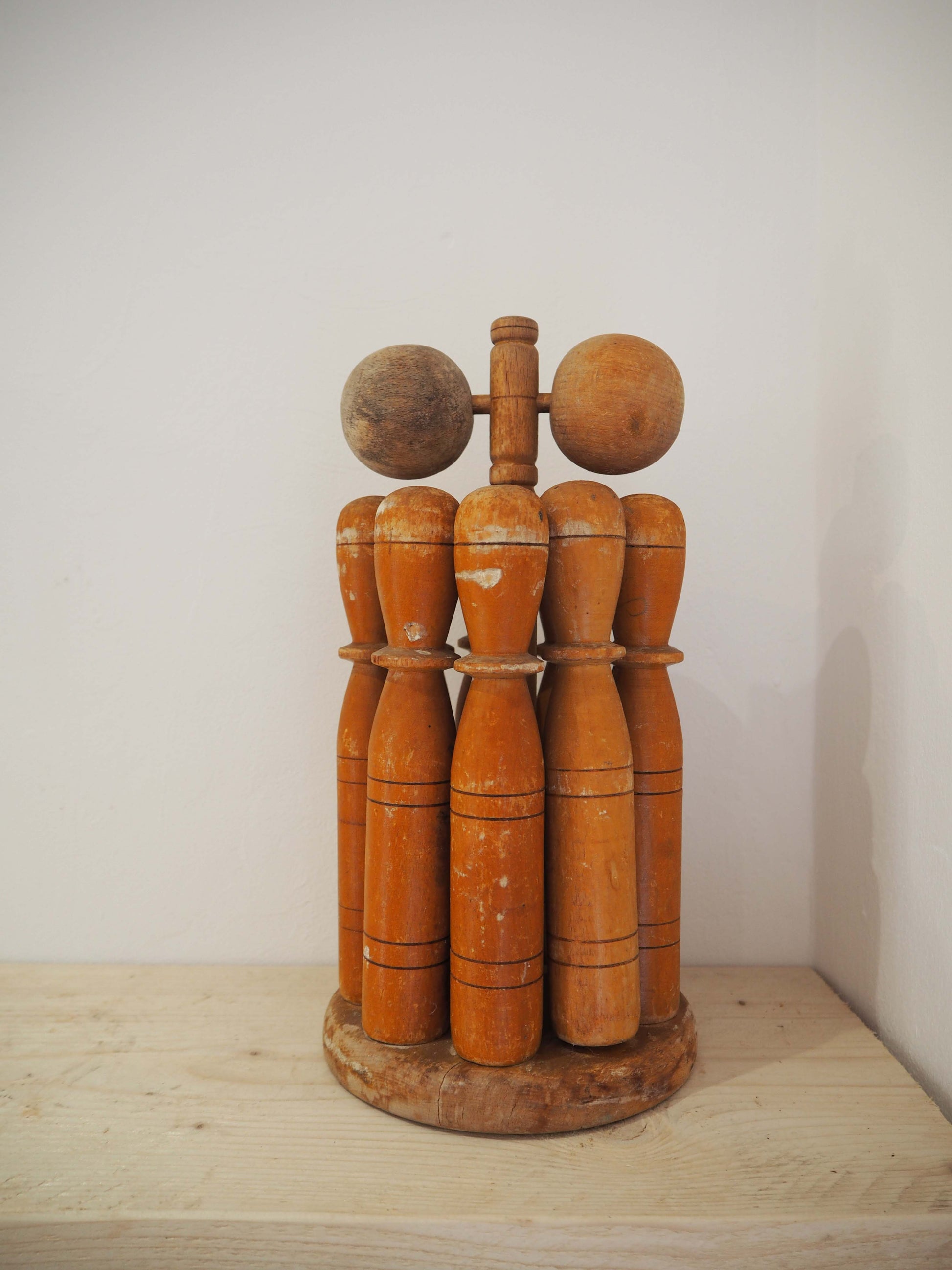 Vintage Antique Early 20th-Century English Wooden Skittle Set