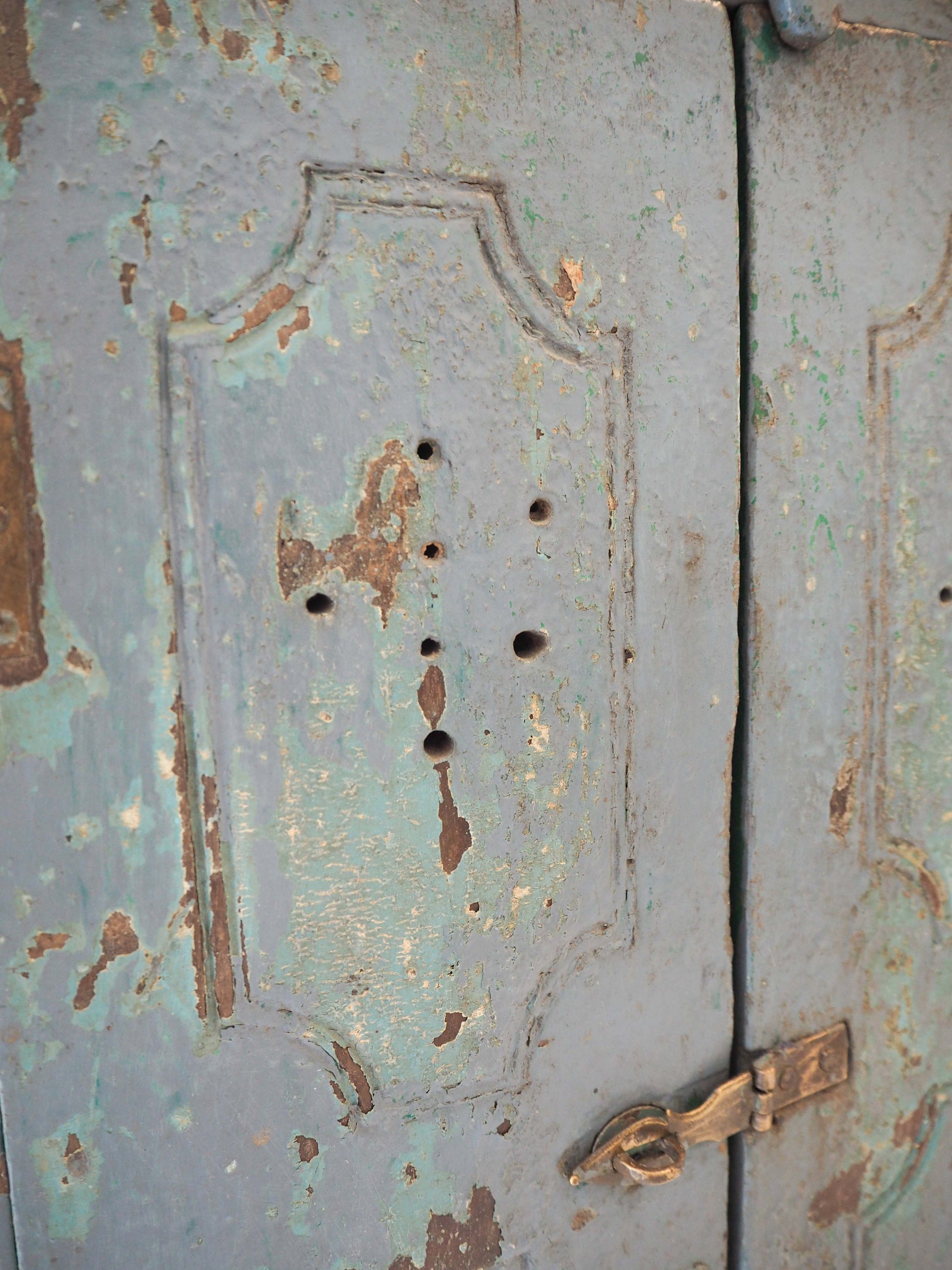 A beautiful antique Indian pantry cupboard made from solid teak. Originally, this would have been used as a pantry or cold store for food. The holes in the wood allow air to flow through the piece keeping food cool.