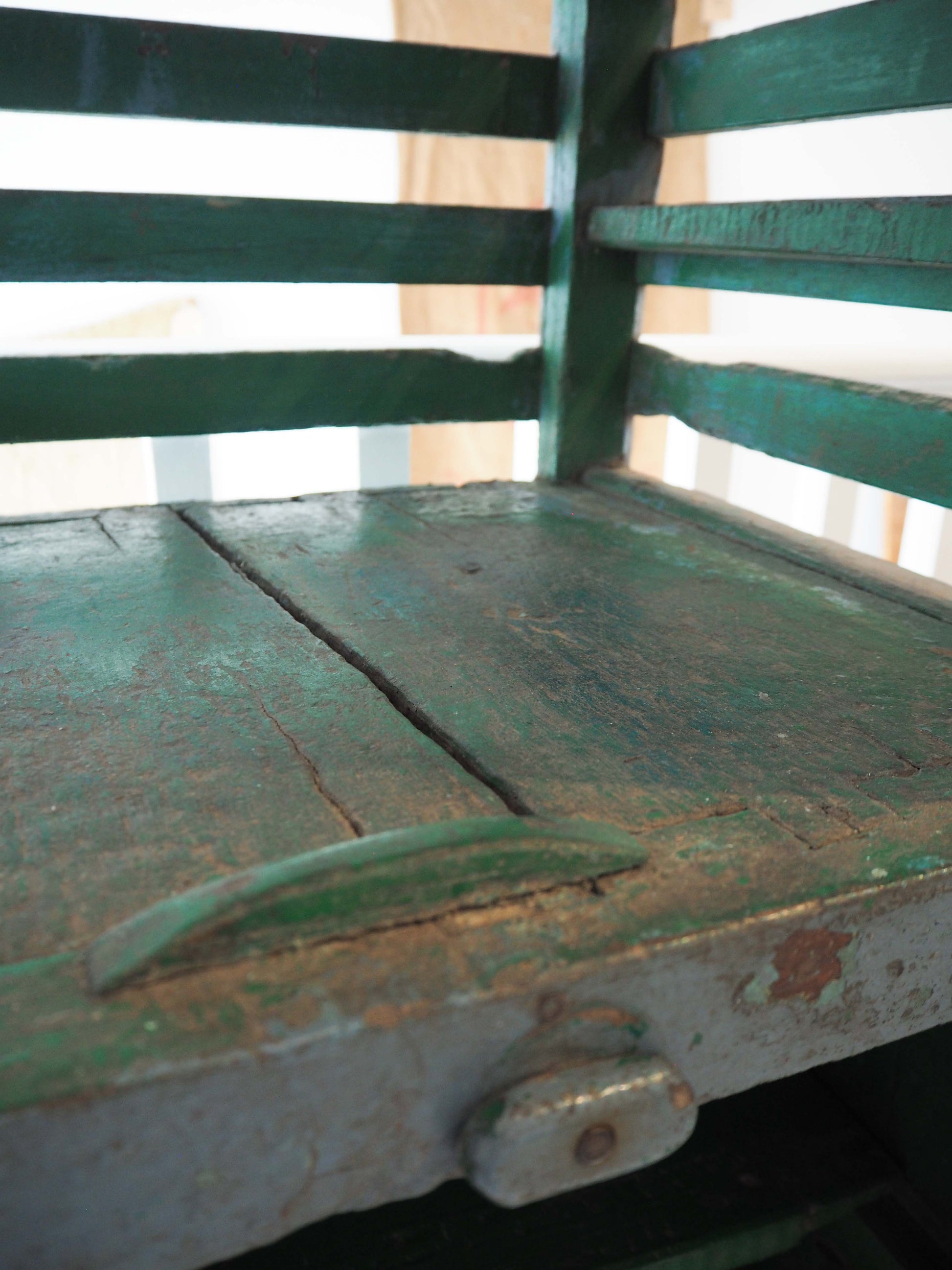 It's in fantastic original condition with blue chippy paint on the exterior, and a vibrant green interior.