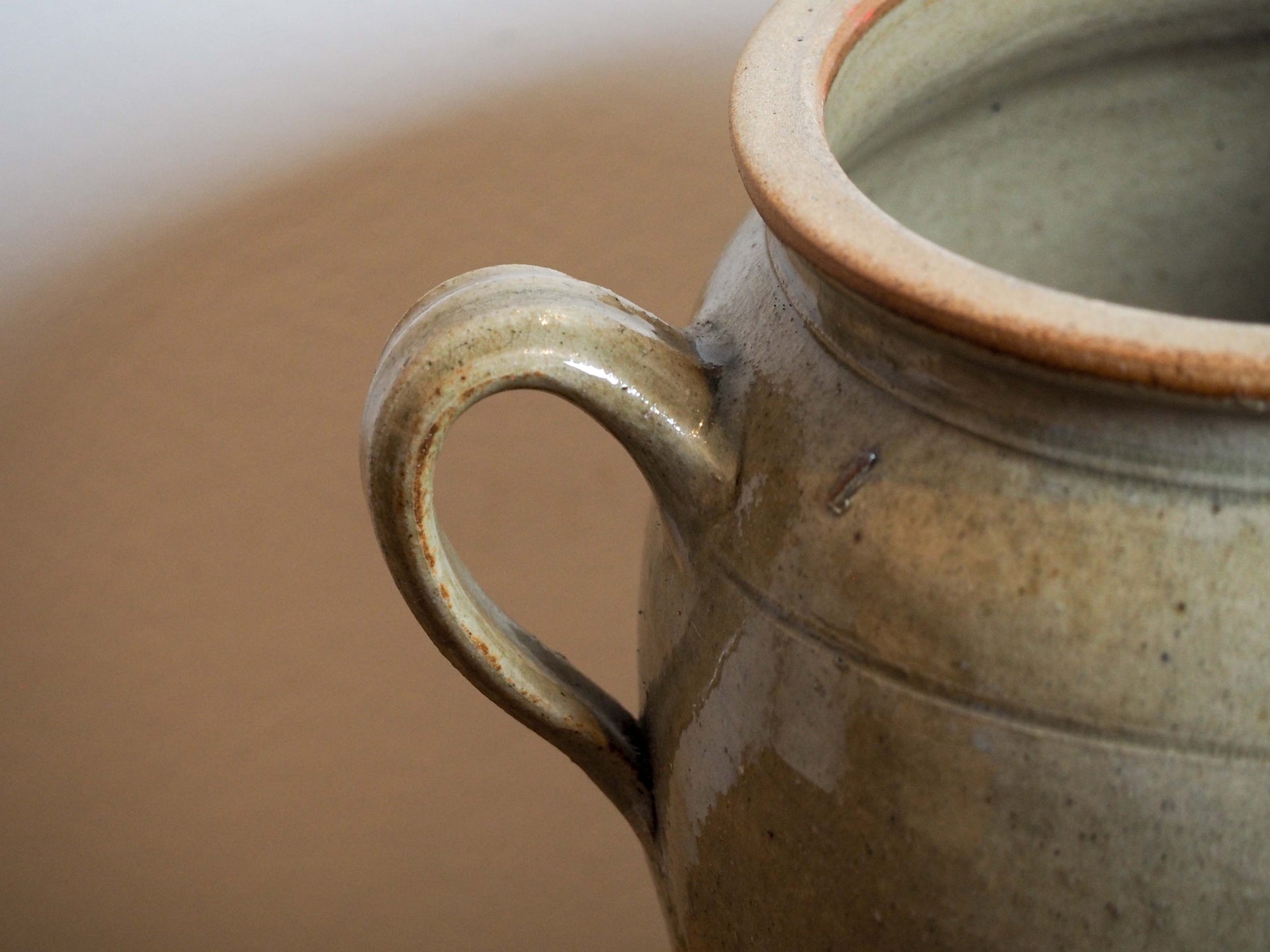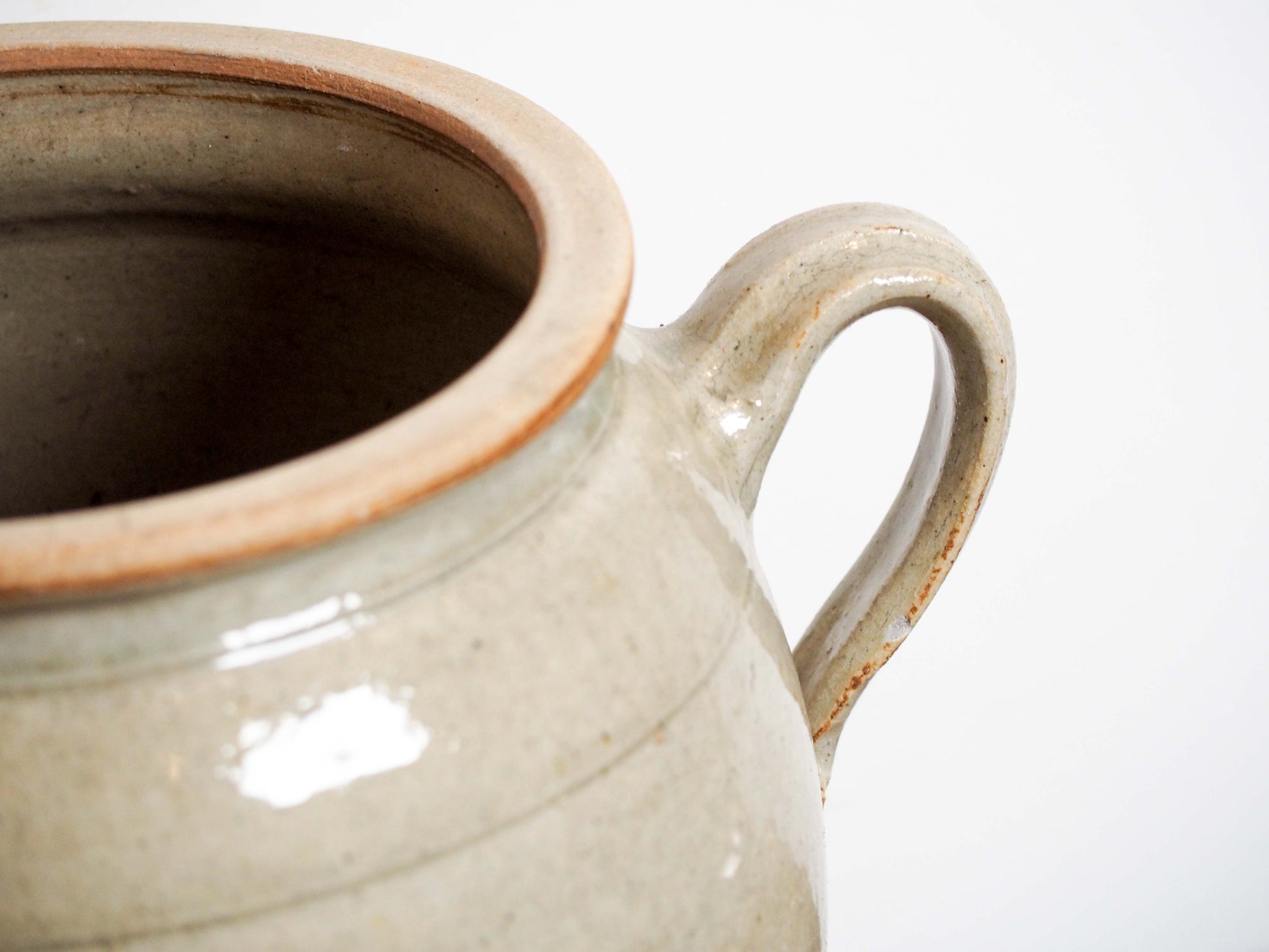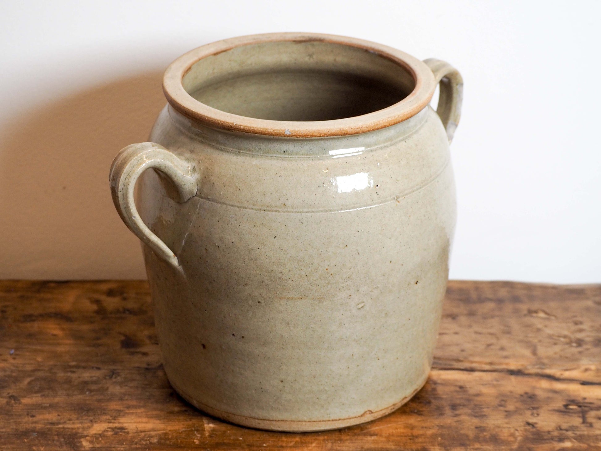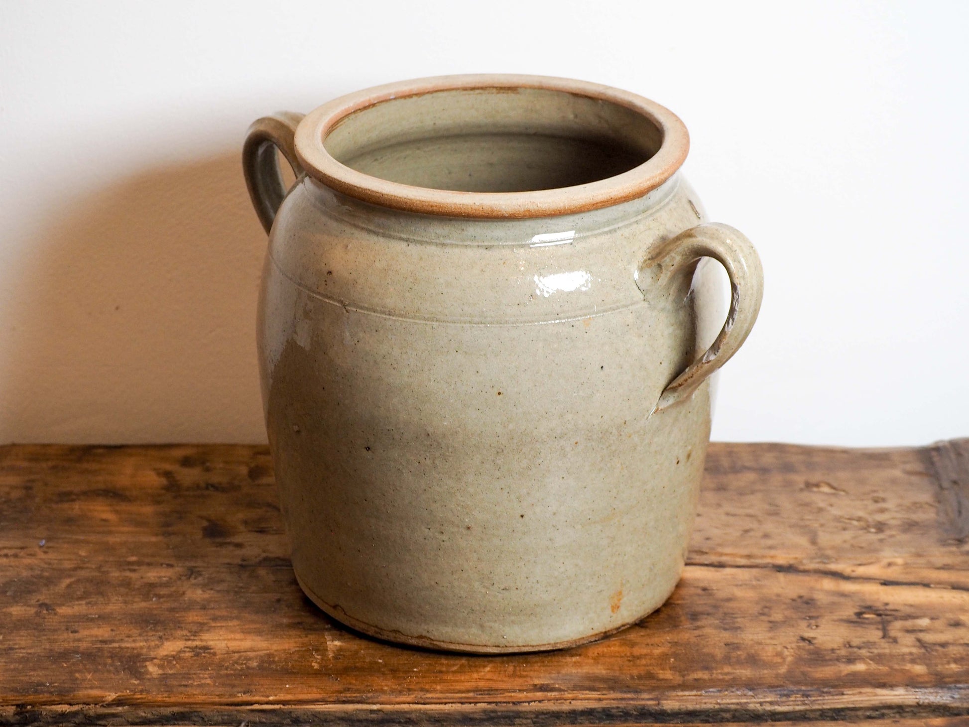 A beautiful vintage French stoneware confit pot, finished in a soft grey glaze. It's in fantastic vintage condition with no cracks or chips.