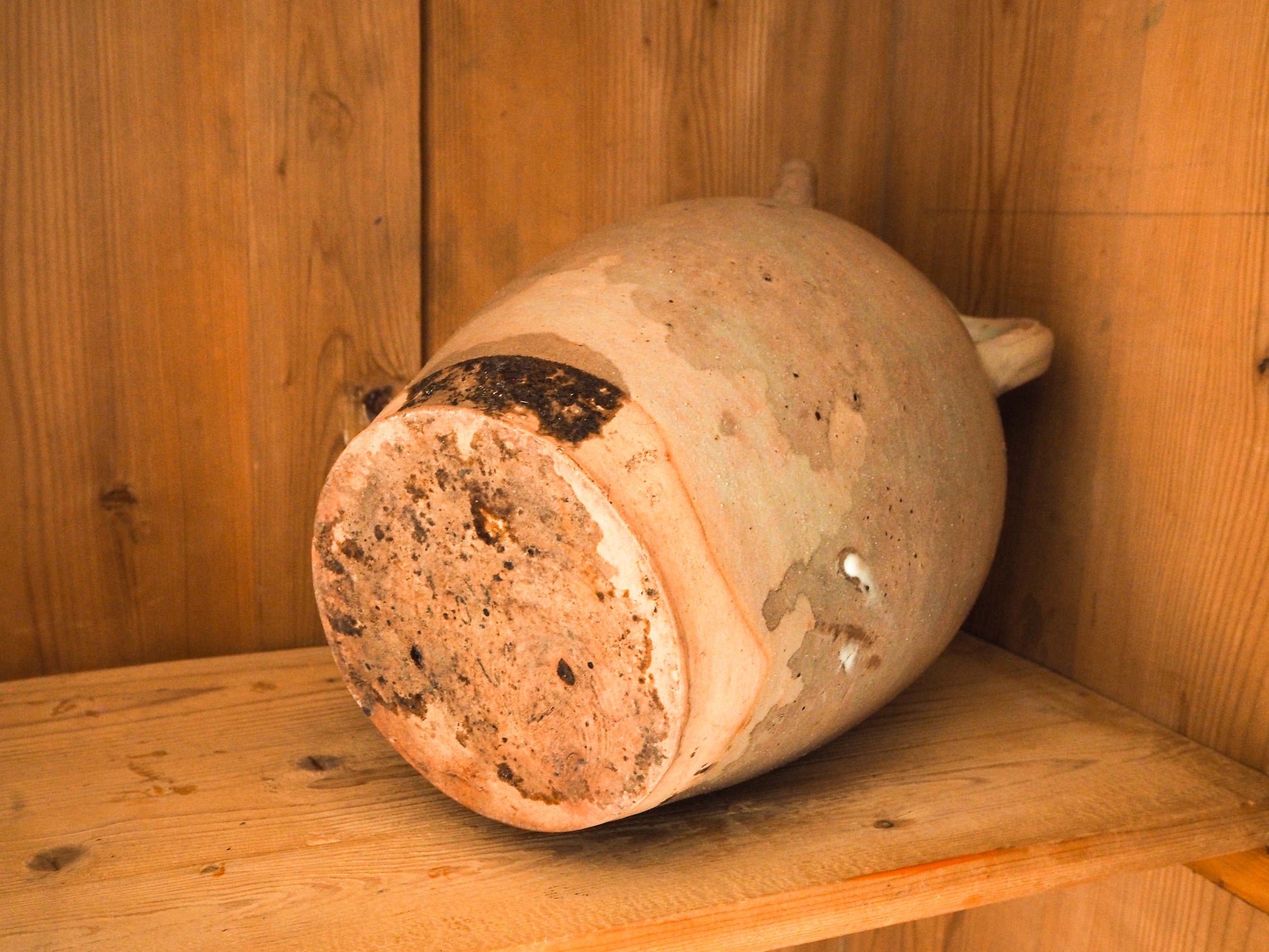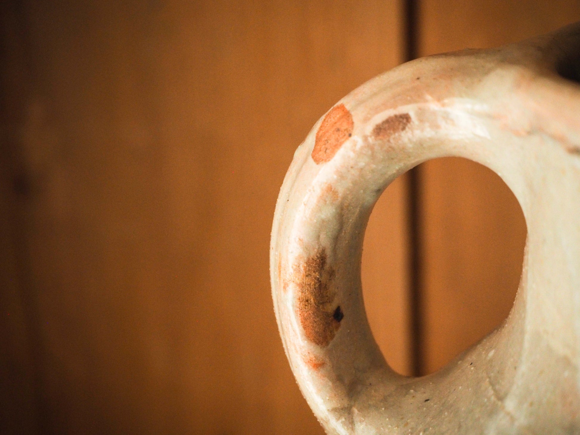 A beautiful large vintage French stoneware oil jug finished in a fantastic pale grey / cream glaze with double handle. It's in great vintage condition with minor cracks and chips.
