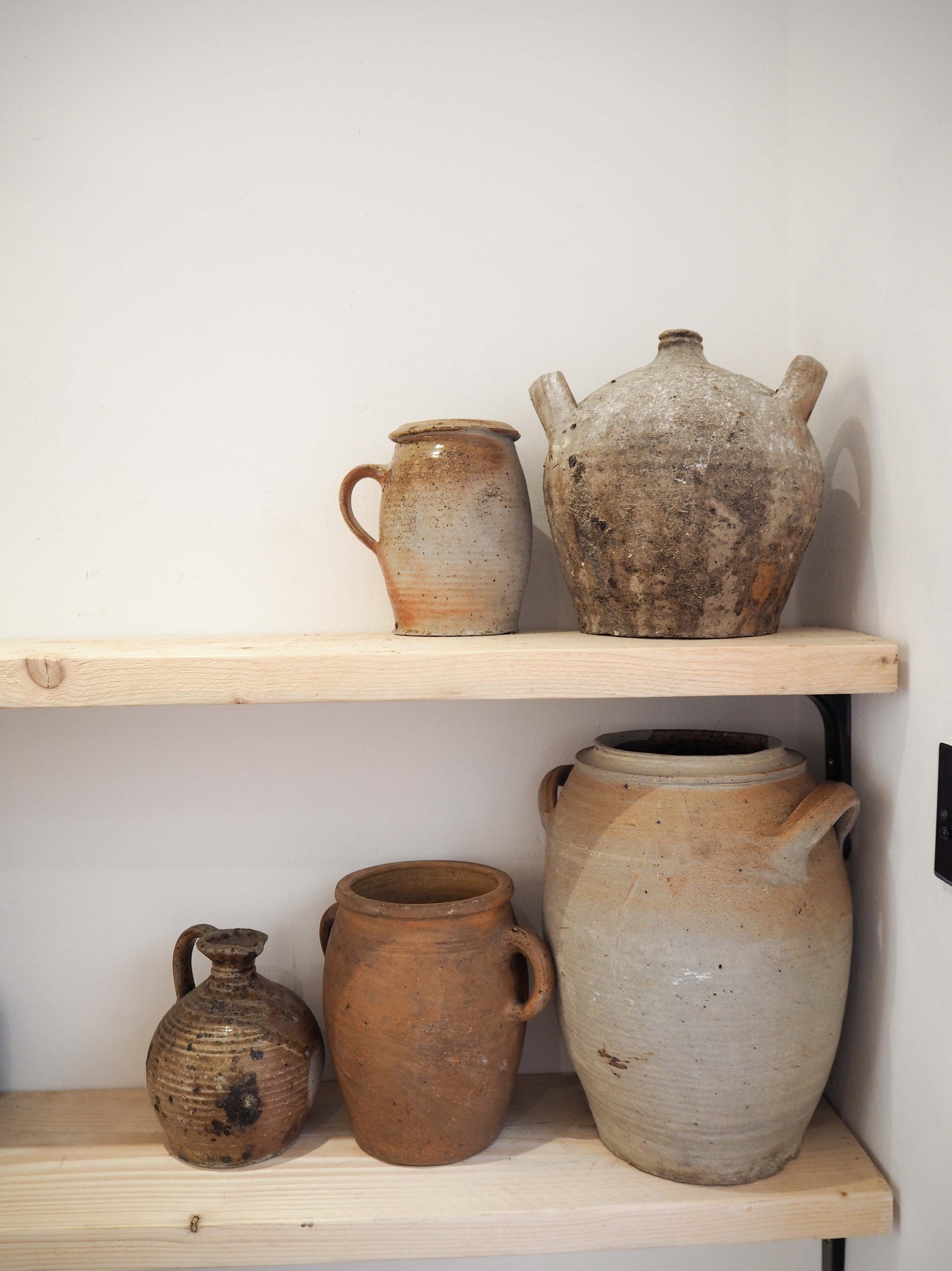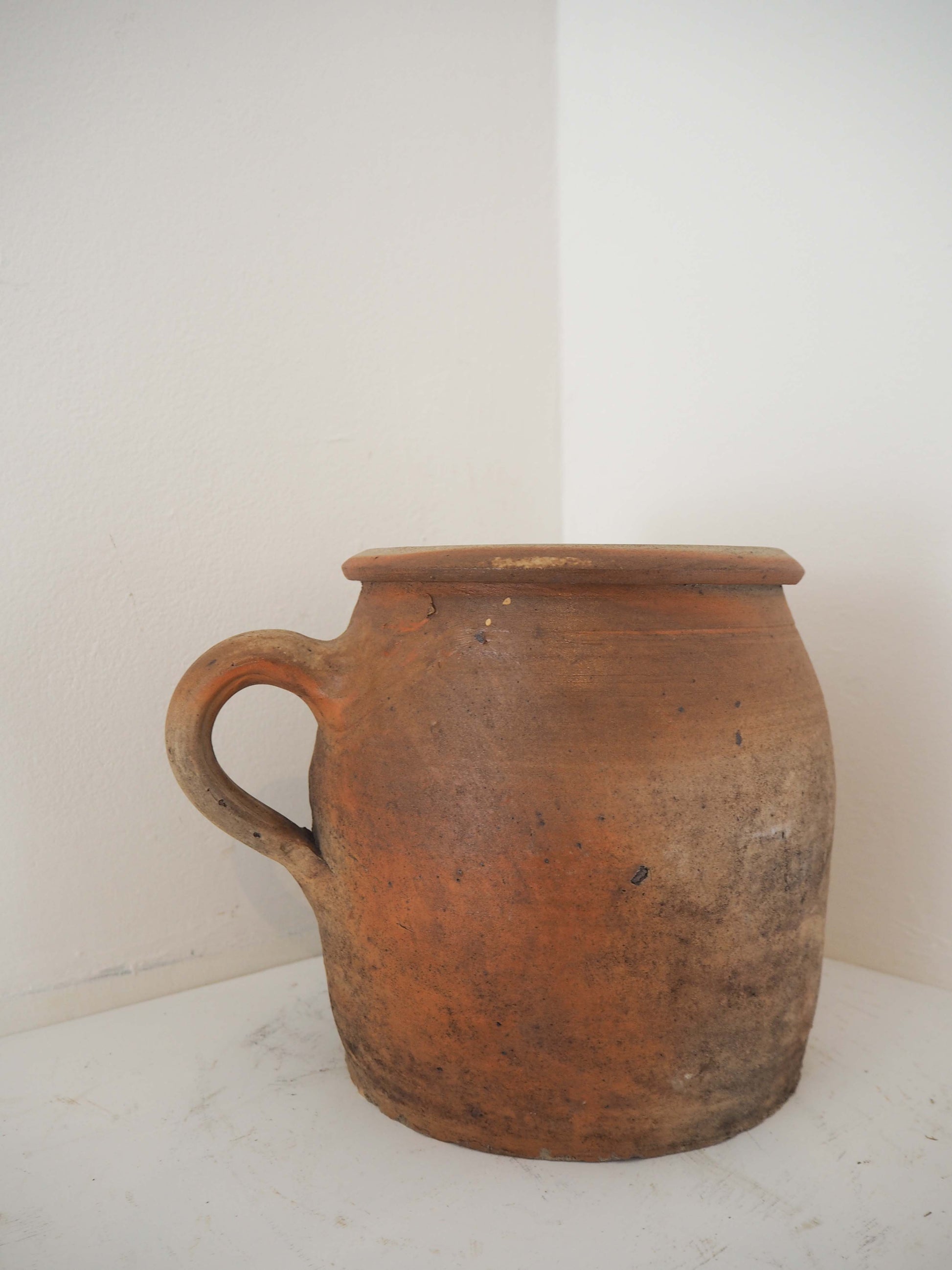 Confit is the French word that means “to preserve”– the mustard and green pots were used for storing cooked meats and then buried in the ground or stored in stone-lined larders. This storage process preserved the cooked meat without refrigeration and could then be enjoyed throughout the winter months. Now, these pots are beautiful decorative items and make a great vase.