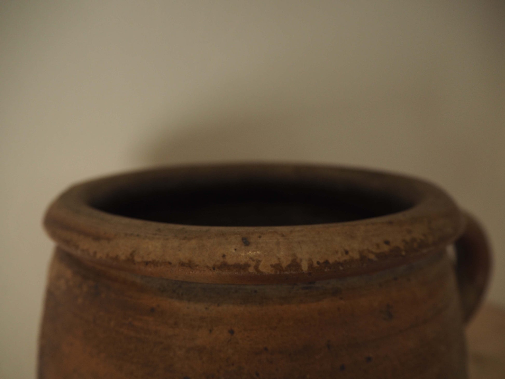 Vintage Antique Rustic French Handmade Confit Pot With Handle / Kitchen Storage Jar