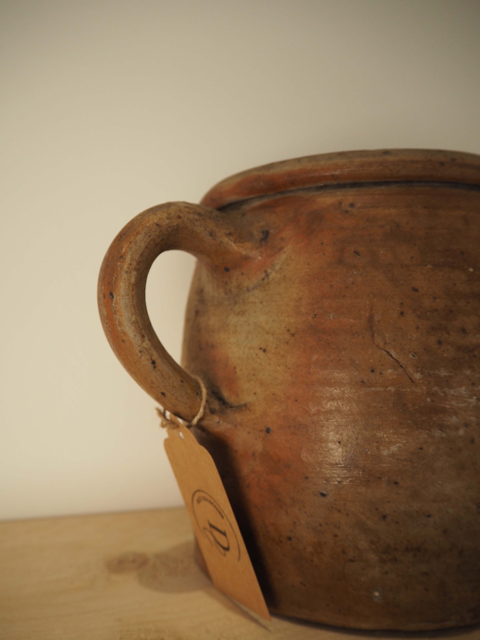 A beautiful vintage French confit pot with textured matt glaze. Featuring one handle, the design resembles a mug. Fill it with a beautiful bunch of hydrangeas, or simply display as it is.