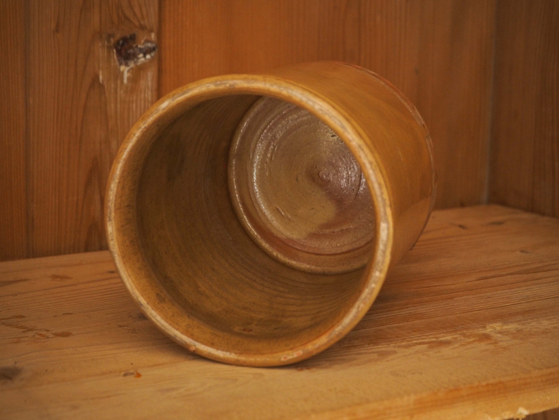 Vintage / Antique Rustic French Yellow Stoneware Confit Pot / Kitchen Storage Jar / Preserve Pot