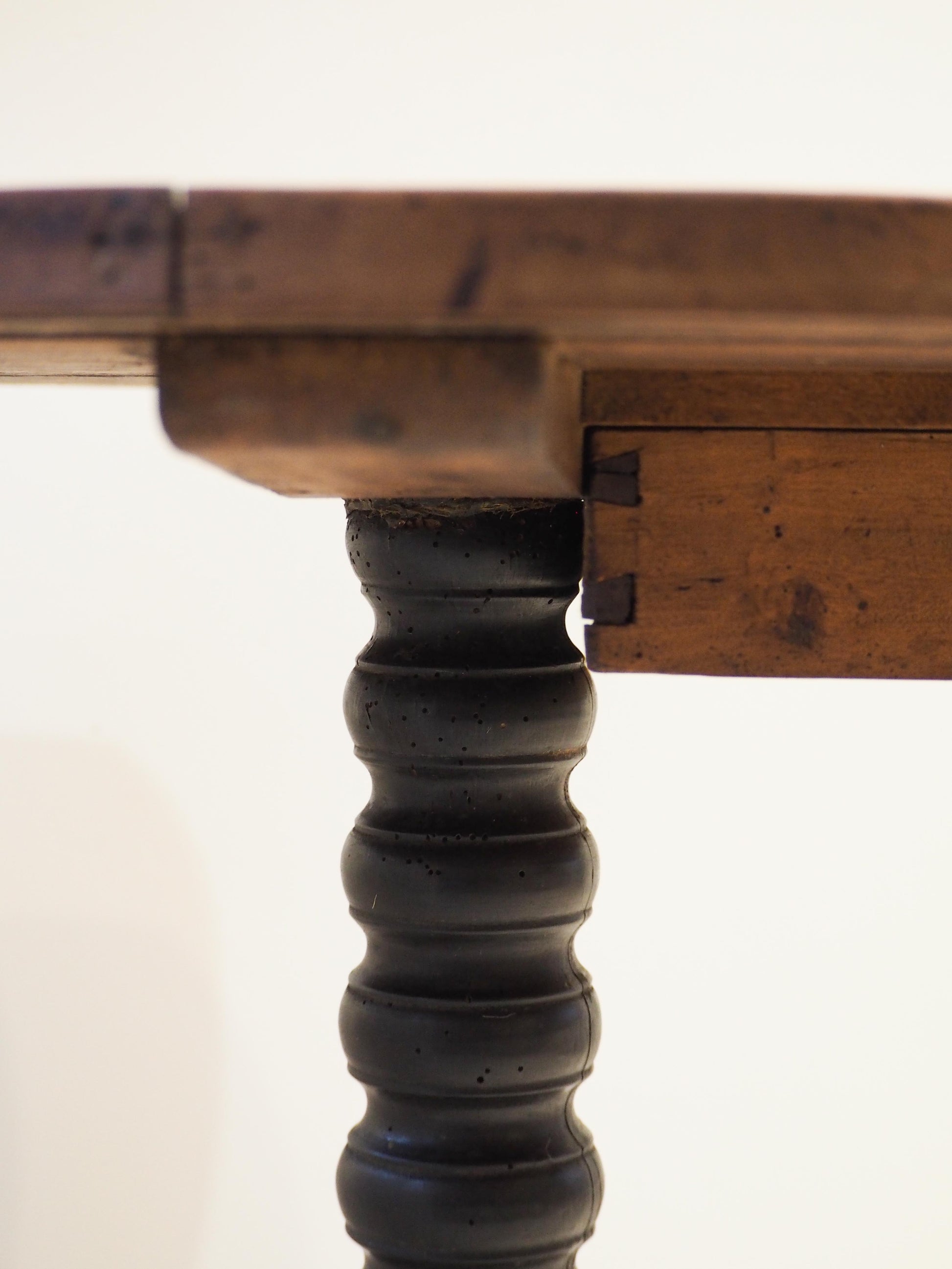 A beautiful Victorian wooden bobbin table with single drawer and ebonised base. A beautiful and timeless piece of furniture.