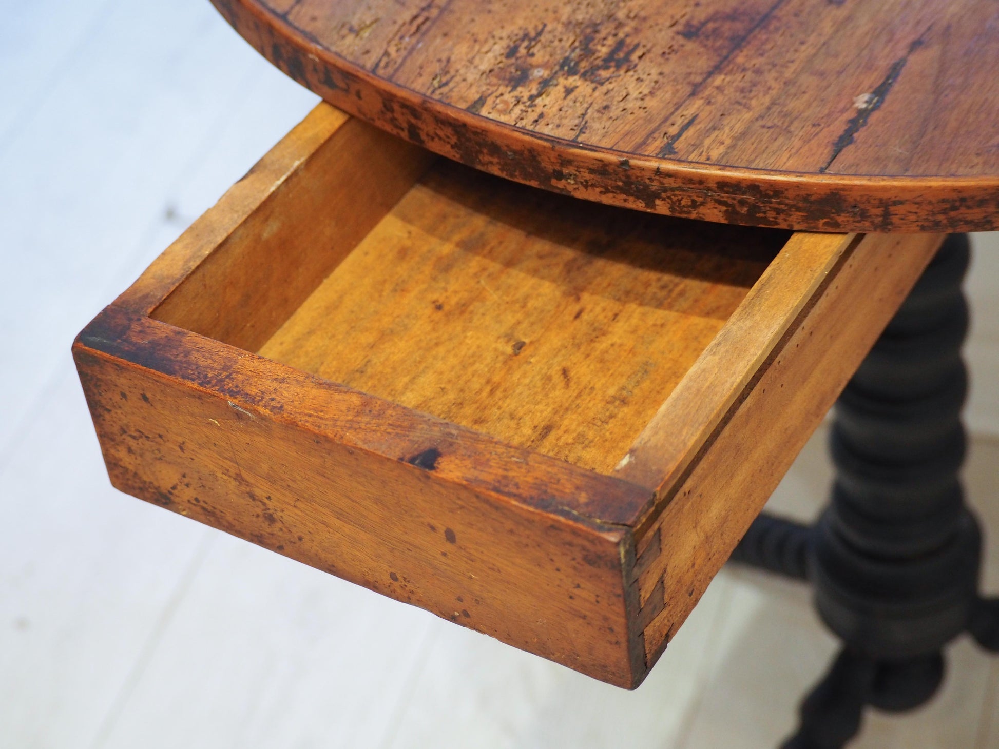 Vintage Antique Victorian Round Wooden Bobbin Table with Single Drawer & Ebonised Base / Furniture