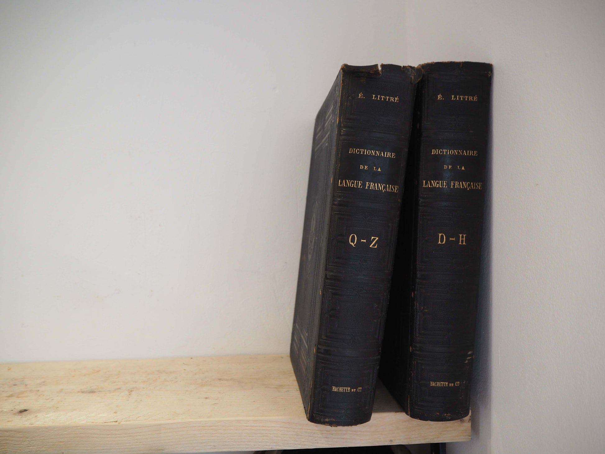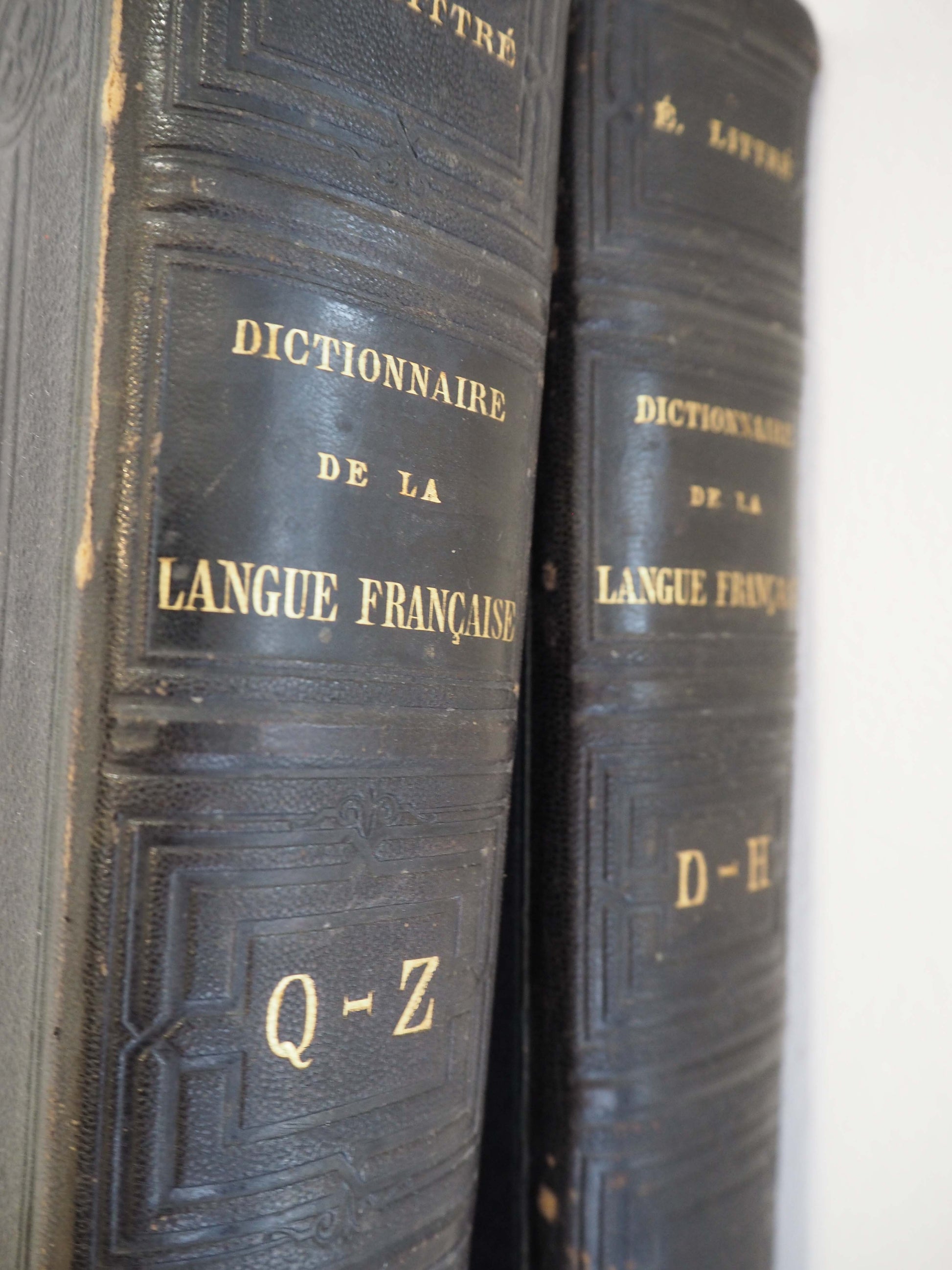 A pair of stunning leather bound French dictionary's including D-H and Q-Z. Perfect for displaying on a shelf. Sold individually.