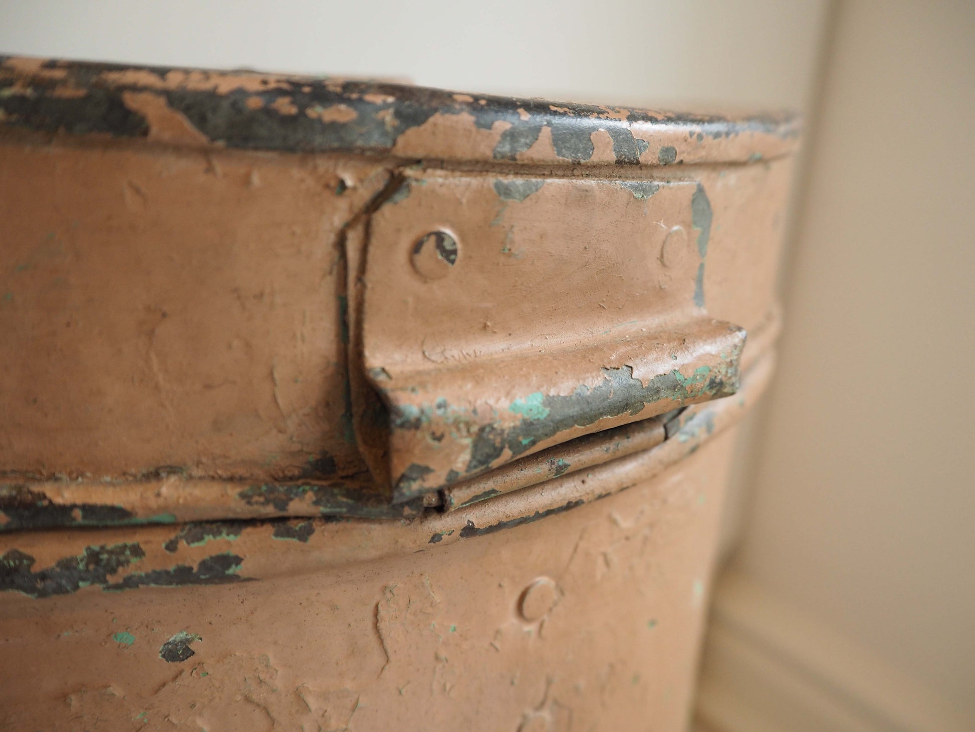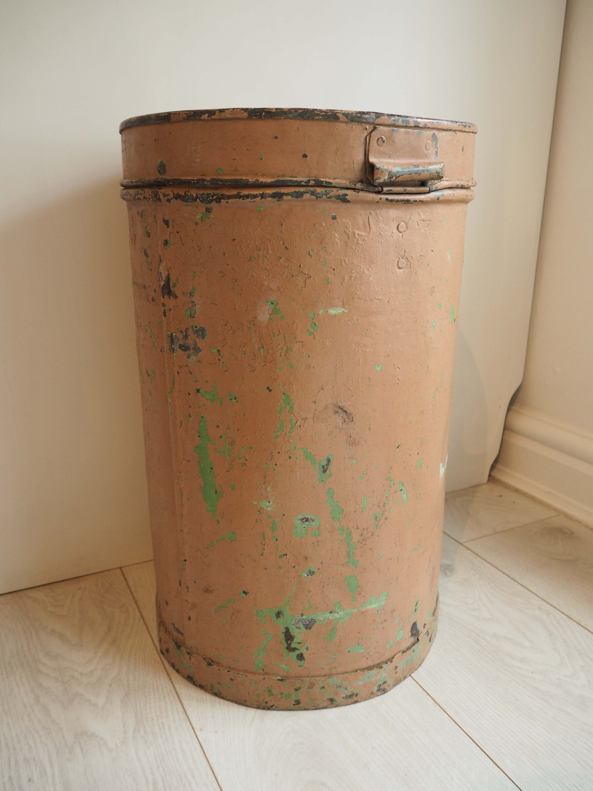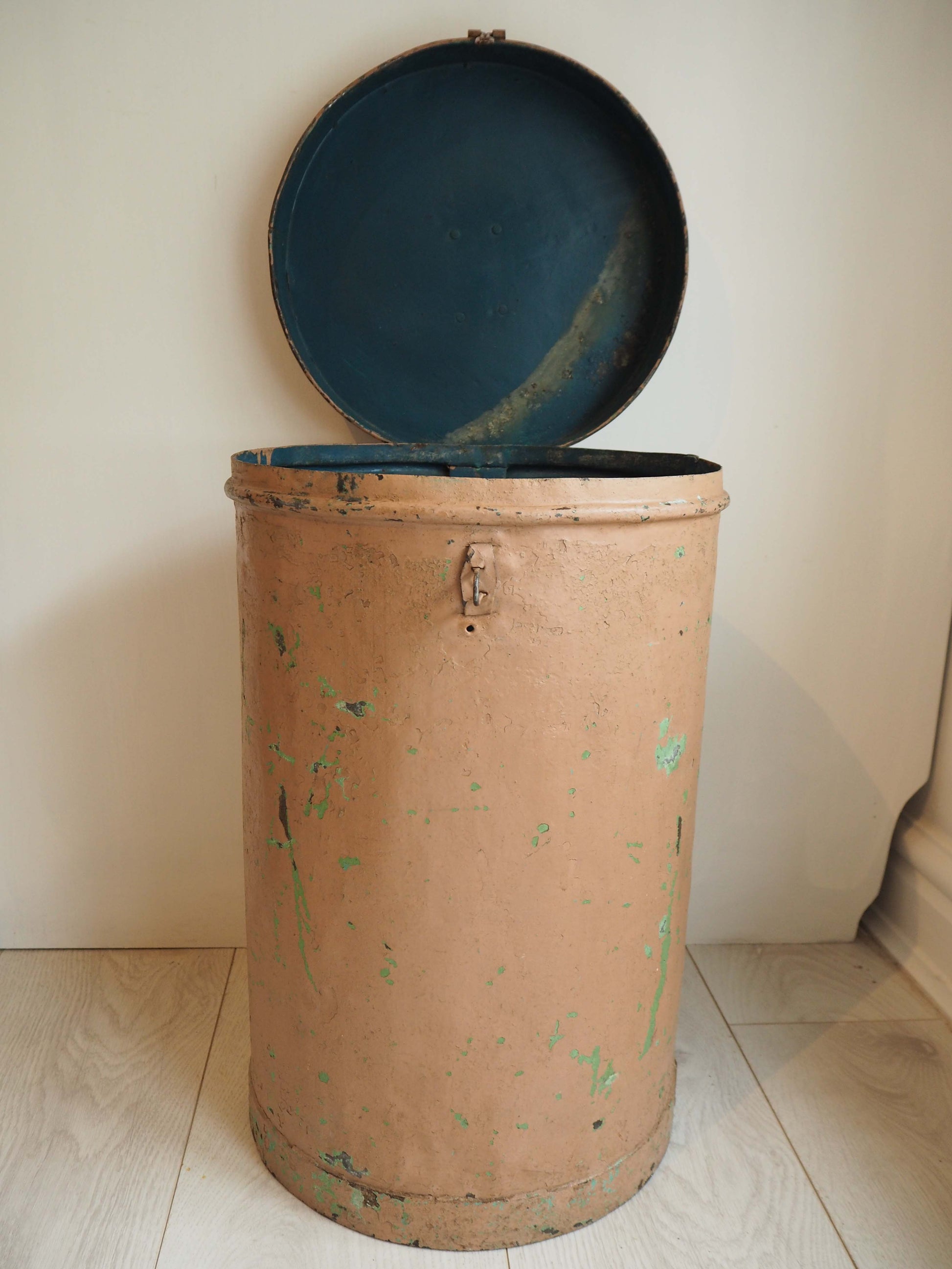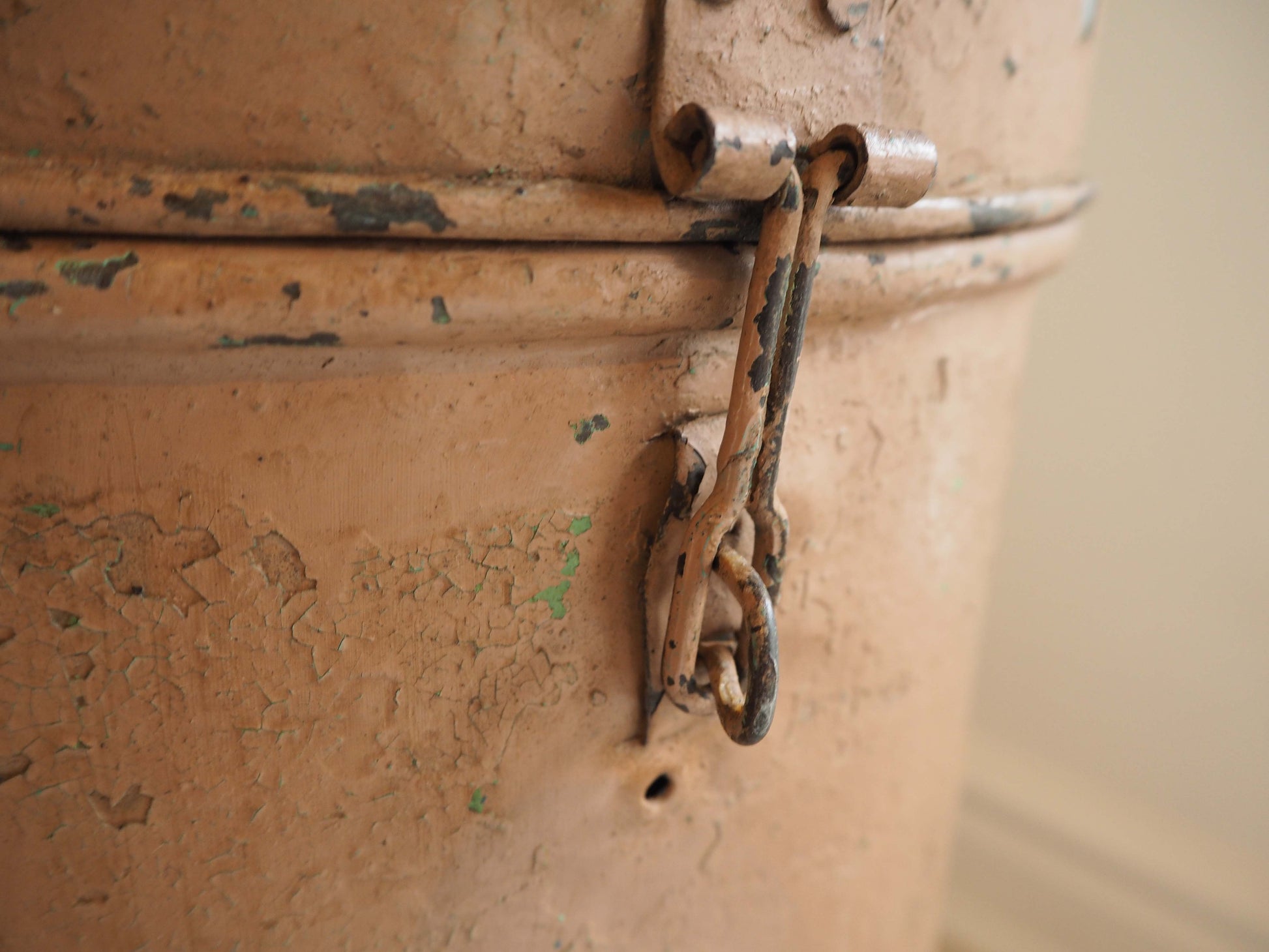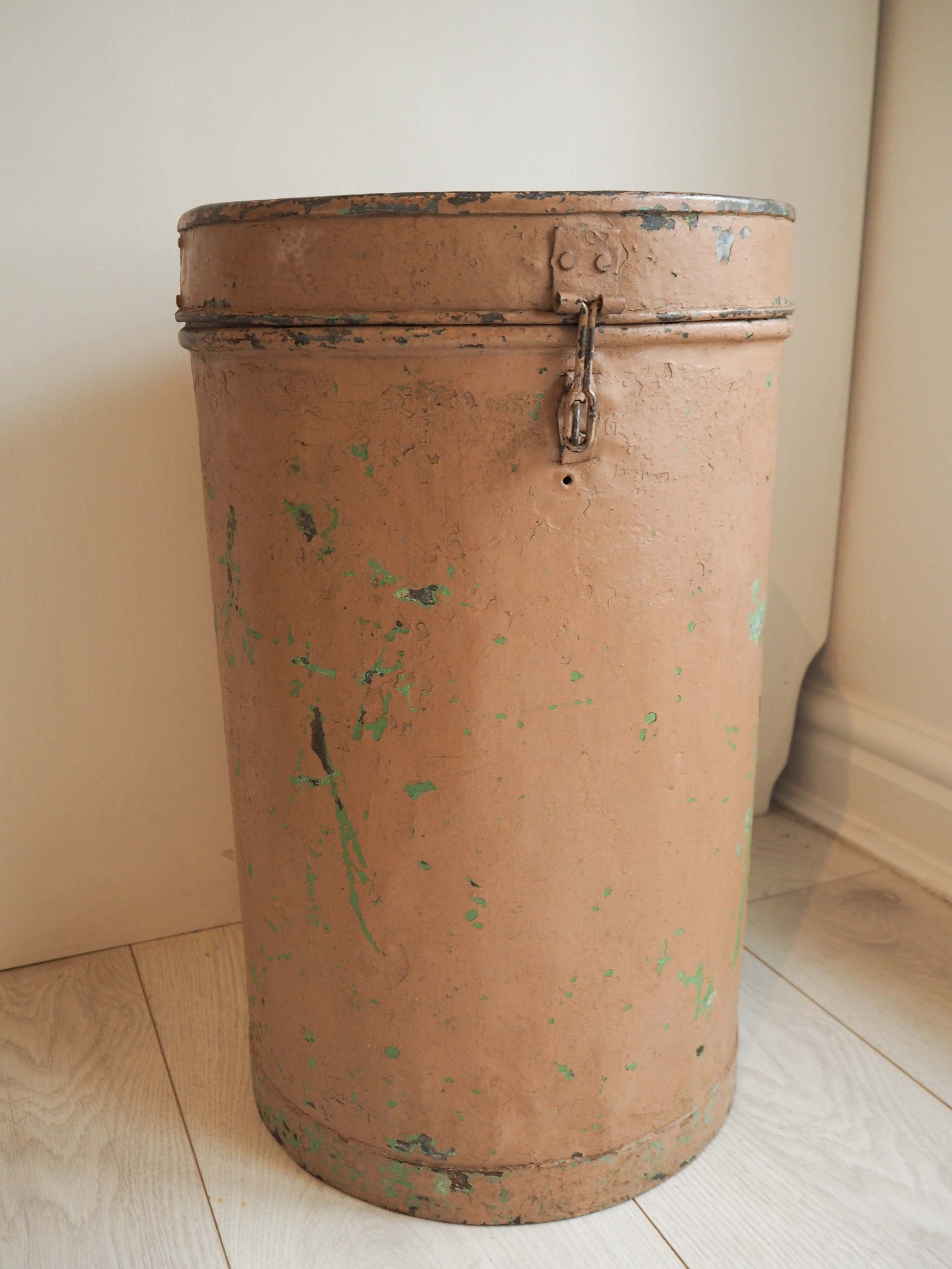 Vintage Large Pink Painted Metal Vintage Indian Rice Storage Drum / Bin / Laundry Basket - Early 20th Century