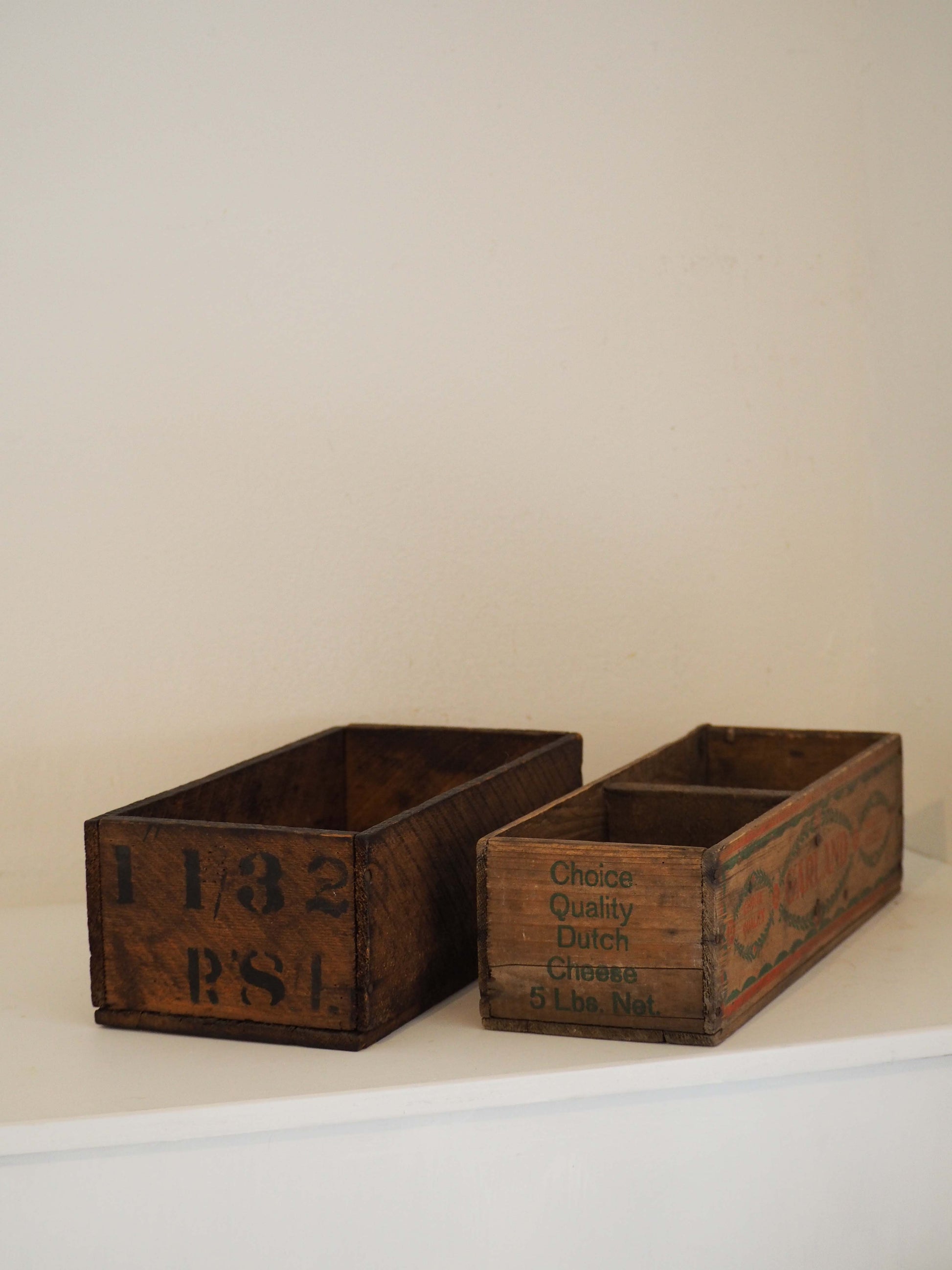 A lovely vintage rustic wooden box, with original stamped numbers and lettering on one side.