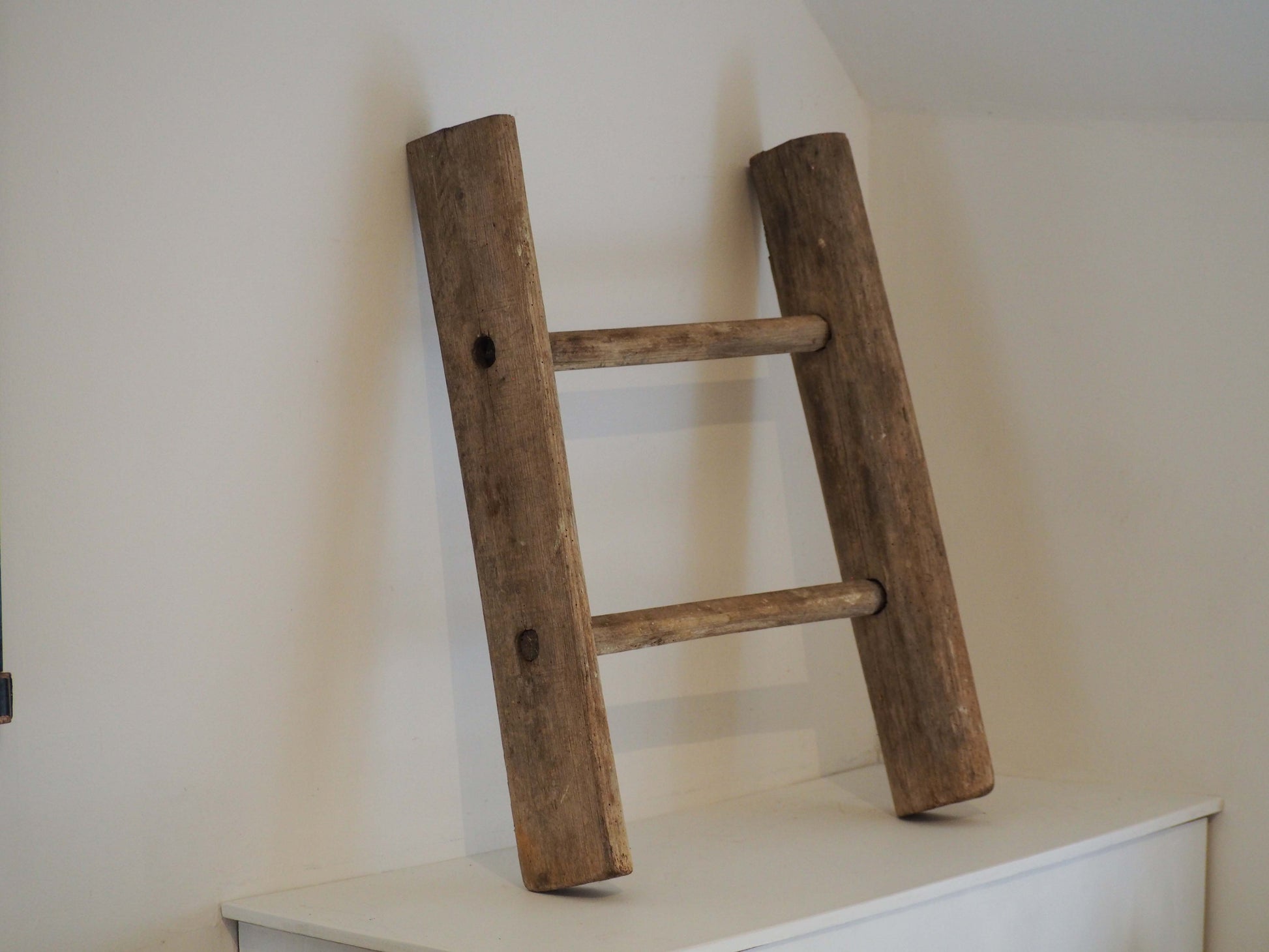 A lovely small rustic decorative ladder, originally from France. Made from beech wood, they have fantastic patina and would look lovely dressed with French linens, or small towels in a bathroom.