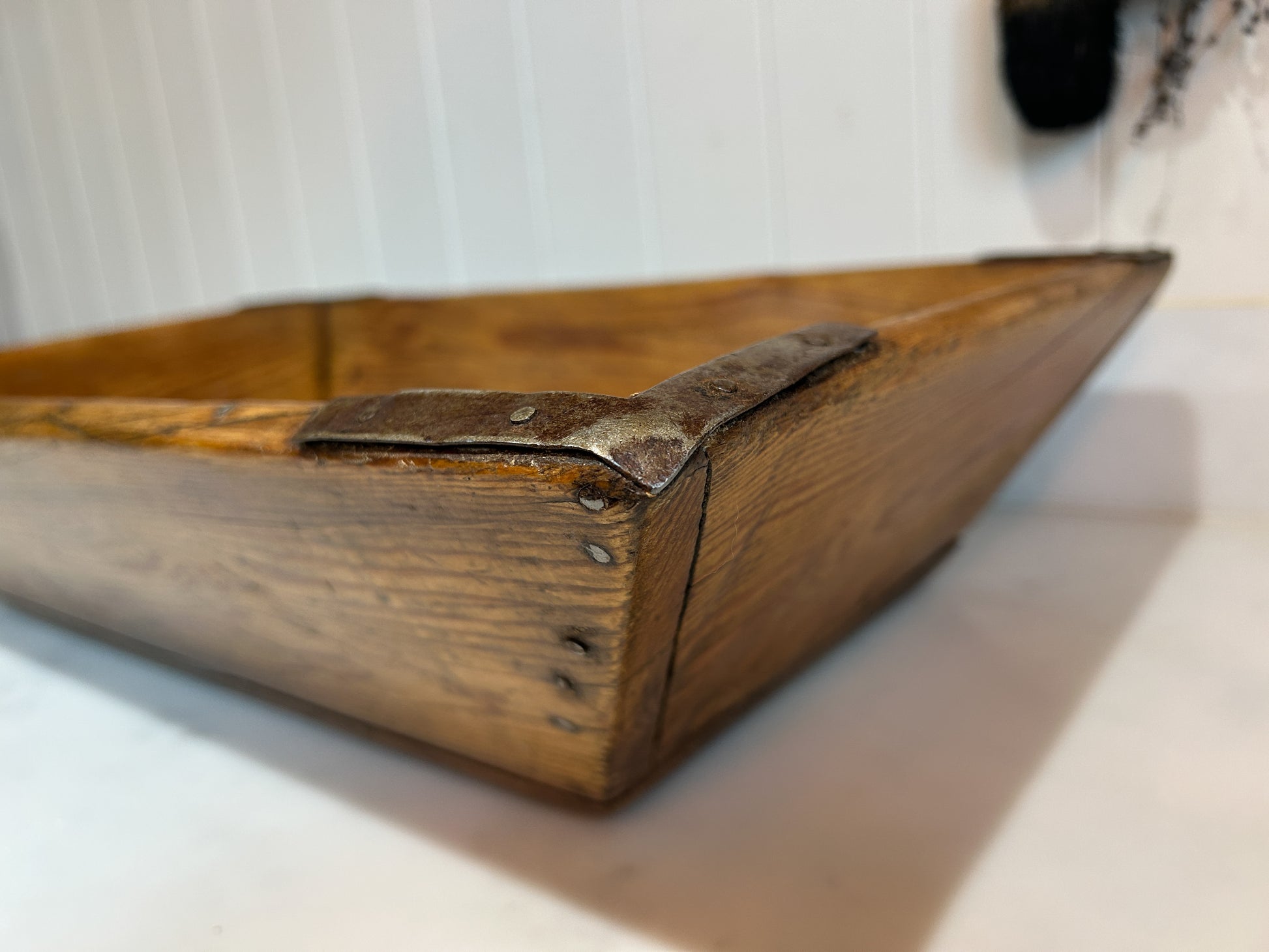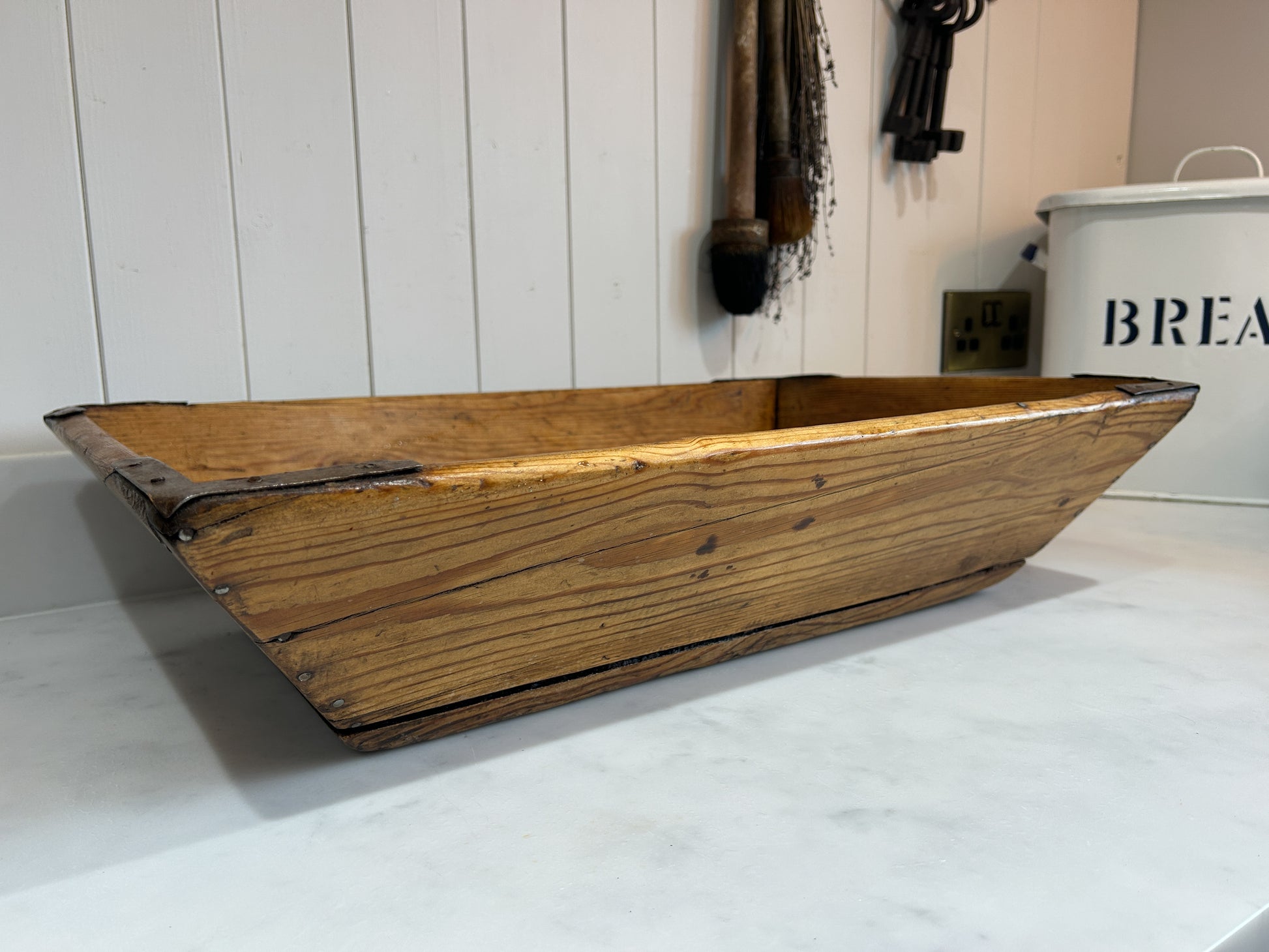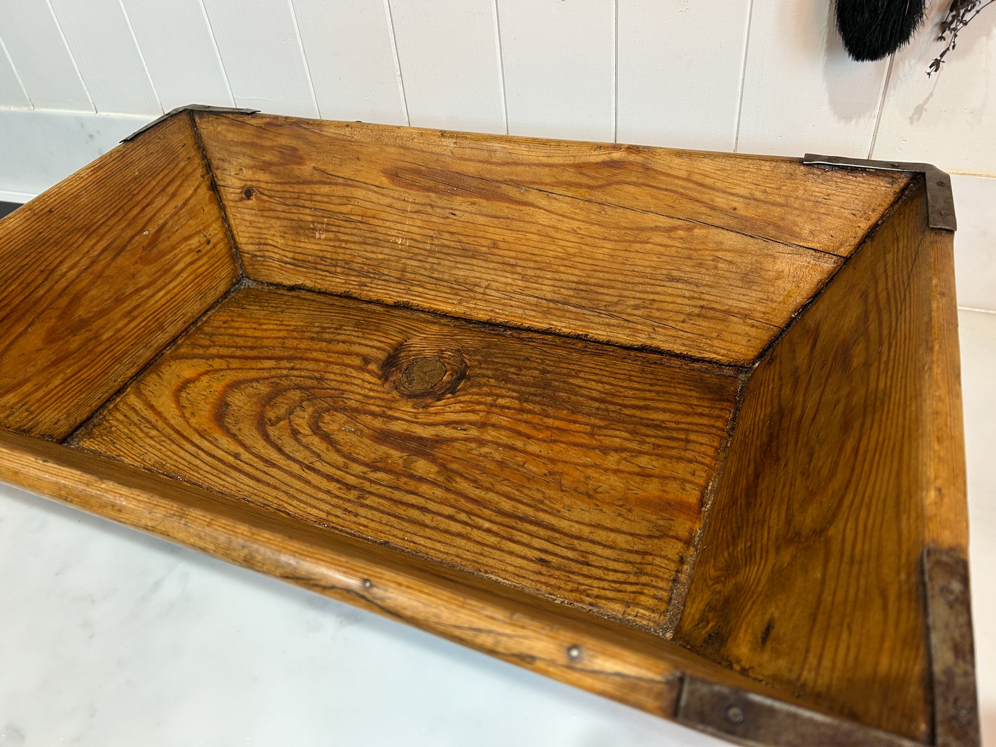 Wooden Rustic Antique Rectangular Dough Trough with Metal Detailing / Farmhouse Kitchen Storage